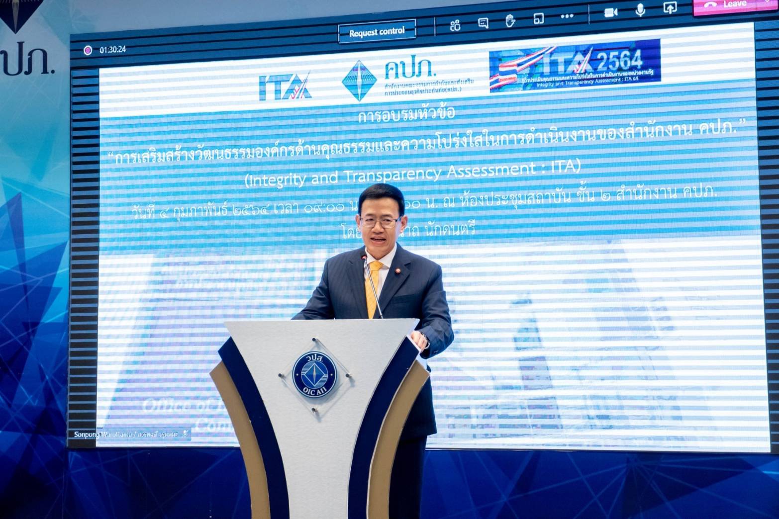 “การจัด Training และการเตรียมการเข้ารับการประเมิน ITA ของสำนักงาน คปภ. ไม่ได้มุ่งหวังเพียงจะให้ได้รับผลการประเมินที่ได้คะแนนดีขึ้น แต่ความตั้งใจที่แท้จริงในการเตรียมการครั้งนี้ คือความมุ่งมั่นที่จะทำให้สำนักงาน คปภ. สามารถยกระดับด้านคุณธรรมและความโปร่งใสในการดำเนินงานตามหลักธรรมาภิบาลที่ดี เพื่อที่จะเป็นที่พึ่งของประชาชนอย่างแท้จริง ในการเข้าถึงการบริการด้านประกันภัย ด้วยความรวดเร็ว เป็นธรรมและมีคุณภาพยิ่งขึ้น ซึ่งจำเป็นต้องสร้างความเข้าใจ และได้รับความร่วมมือร่วมใจจากบุคลากรทุกคนในองค์กร” เลขาธิการ คปภ. ย้ำในตอนท้าย