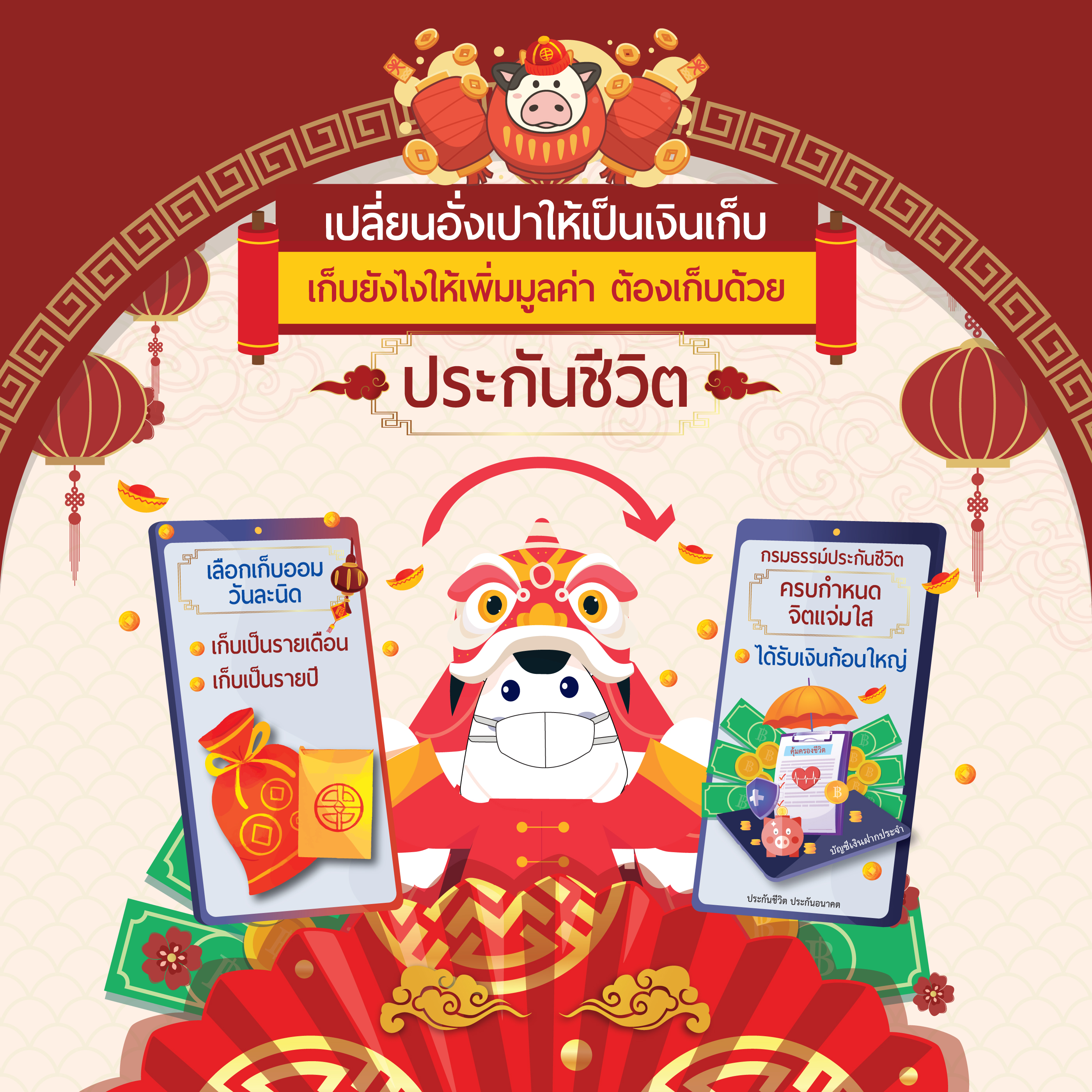 ส่วนการมอบอั่งเปาถือเป็นกิจกรรมที่ลูกหลานตั้งตารอคอย และด้วยภาวะเศรษฐกิจที่ฝืดเคืองบางท่านที่ได้รับอั่งเปานับเป็นโชค และเป็นโอกาสอันดีที่จะได้เก็บออม สะสมเงินก้อนเล็กให้เป็นเงินก้อนโตในวันหน้า หรือนำมาต่อยอดให้งอกเงยด้วยการลงทุน การซื้อประกันชีวิตสะสมทรัพย์หรือยูนิตลิงก์ถือเป็นการลงทุนที่ให้ทั้งความคุ้มครองชีวิตและการออมทรัพย์ ที่มาพร้อมกับการวางแผนความเสี่ยงทางการเงินไปในตัว นับเป็นการต่อยอดอนาคตที่มั่นคง