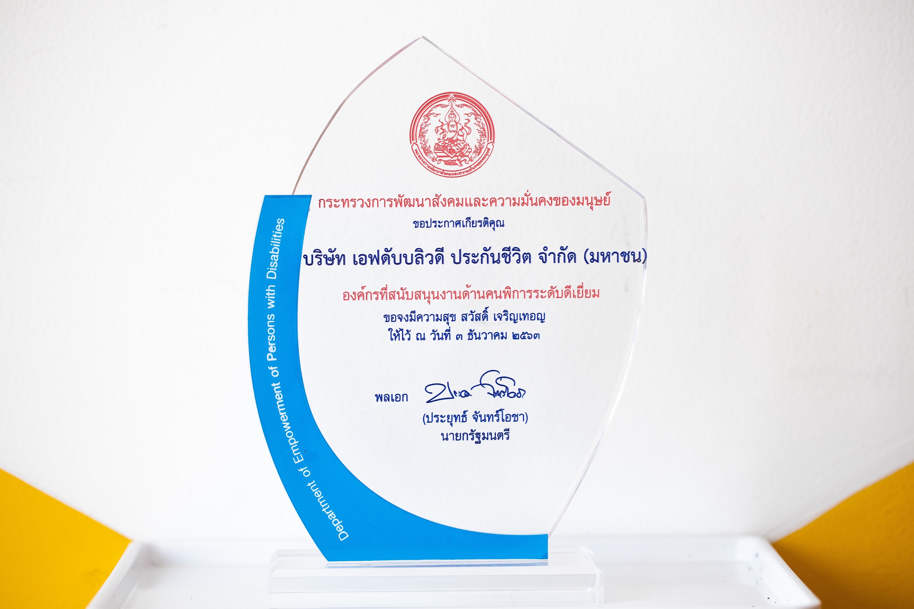 โดยให้โอกาสในการจ้างงานแก่ผู้พิการเพื่อร่วมทำงานใน Contact Center ที่มูลนิธิพระมหาไถ่และโรงเรียนอาชีวมหาไถ่ และให้บริการรถตู้รับ-ส่งพนักงานทุพพลภาพ การให้ความสำคัญในการสนับสนุนผู้พิการอย่างต่อเนื่องนี้ ทำให้บริษัทฯ ได้รับ รางวัลองค์กรที่สนับสนุนงานด้านคนพิการระดับดีเยี่ยม ซึ่งเป็นรางวัลที่มอบให้กับองค์กรที่สนับสนุนการจ้างงานและส่งเสริมให้ผู้พิการสามารถเข้าถึงสิทธิขั้นพื้นฐาน โดย FWD เป็นหนึ่งในบริษัทที่สนับสนุนการจ้างงานสำหรับผู้พิการมาโดยตลอดและได้รับรางวัลนี้ต่อเนื่องเป็นปีที่ 5