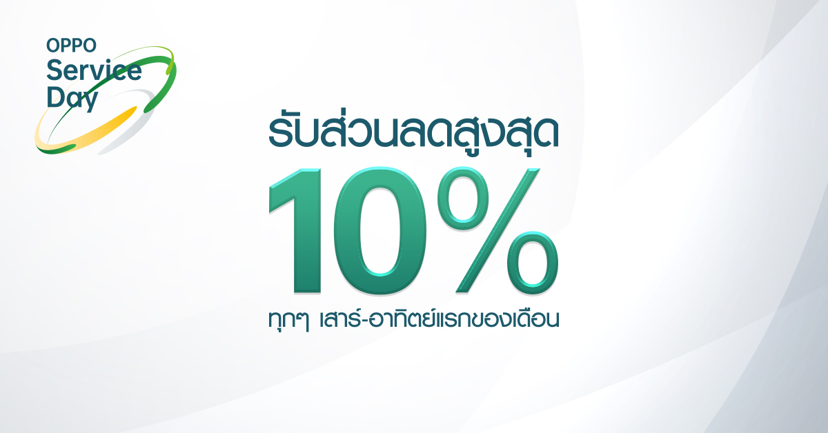 แล้วพบกับ OPPO Service Day ในวันเสาร์-อาทิตย์แรกของทุกๆ เดือน กับบริการสุดพิเศษและส่วนลดสูงสุดถึง 10% ที่ OPPO Service Center สาขาใกล้บ้านคุณ