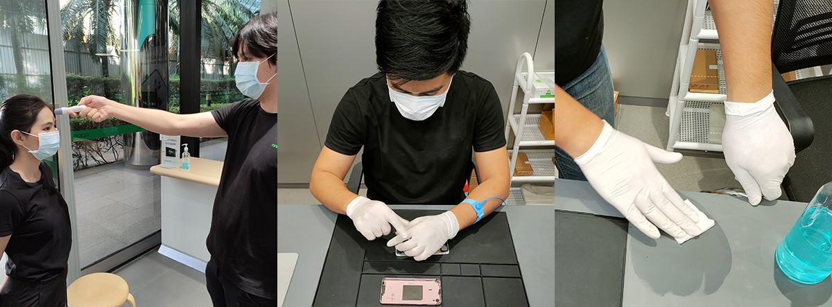 นอกจากนี้ OPPO ยังห่วงใยความปลอดภัยของลูกค้าทุกท่าน ด้วยการจัดมาตรการการป้องกันภายในที่เข้มงวด เพื่อความปลอดภัยในทุกขั้นตอน ไม่ว่าจะเป็น การตรวจเช็คอุณหภูมิช่างและแอดมิน การทำความสะอาดฆ่าเชื้อในบริเวณโดยรอบอย่างถี่ถ้วน ส่วนช่างซ่อม ให้สวมหน้ากากอนามัยและถุงมือ พร้อมจัดเตรียมเจลแอลกอฮอร์ทำความสะอาดมือให้กับลูกค้าที่เข้ารับบริการเพื่อให้ทุกท่านมั่นใจได้ว่าเราให้ความสำคัญทั้งในเรื่องสุขภาพและความปลอดภัยแก่ลูกค้าและพนักงานทุกท่านอยู่เสมอ