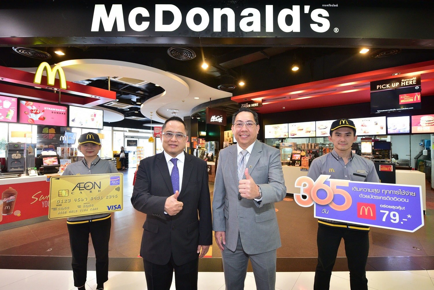 24 กุมภาพันธ์ 2564 : บริษัท แมคไทย จำกัด ผู้ดำเนินธุรกิจอาหารบริการด่วนภายใต้แบรนด์แมคโดนัลด์ในประเทศไทย ร่วมกับ บริษัท อิออน สินทรัพย์ (ไทยแลนด์) จำกัด (มหาชน) ผู้นำการให้บริการทางด้านการเงิน บริการบัตรเครดิต และสินเชื่อส่วนบุคคล ฉลองครบรอบ 8 ปีแห่งการเป็นพันธมิตรทางธุรกิจอันดีมาอย่างต่อเนื่อง เปิดตัวแคมเปญ AEON 365 Days 2021 มอบสิทธิพิเศษให้กับผู้ถือบัตรเครดิตอิออน ได้อิ่มอร่อยกับเมนูโปรด ตอบโจทย์ไลฟ์สไตล์ เติมเต็มความสุขได้ทุกวัน