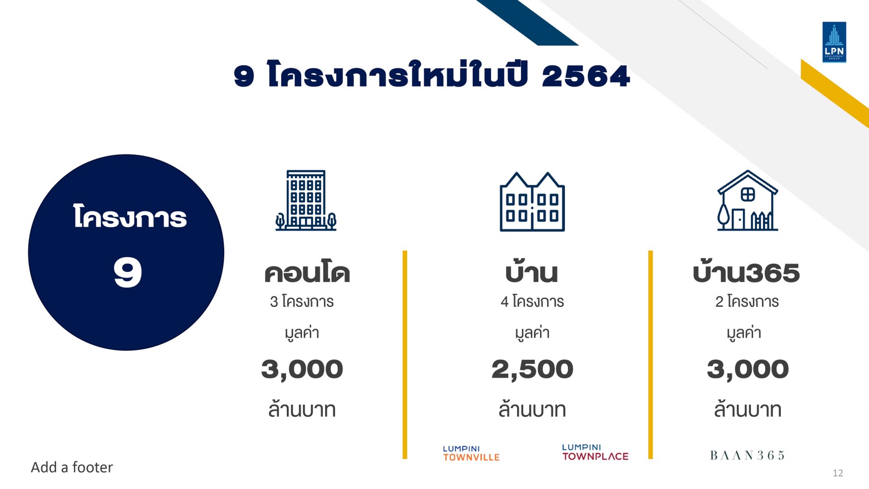 ปี 2564 บริษัทเน้นการเปิดตัวโครงการบ้านพักอาศัยเพิ่มขึ้นเพื่อตอบโจทย์กับความต้องการของผู้ซื้อในตลาดที่ให้ความสนใจซื้อบ้านพักอาศัยทั้งบ้านเดี่ยว บ้านแฝด และทาวน์เฮ้าส์ เพิ่มขึ้น หลังการแพร่ระบาดของ COVID-19 โดยมีแผนเปิดตัวบ้านพักอาศัย 6 โครงการ มูลค่า 5,500 ล้านบาท เป็นโครงการบ้านเดี่ยว สำหรับตลาดพรีเมี่ยมในระดับราคาตั้งแต่ 10 ล้านบาทขึ้นไป ภายใต้แบรนด์ “บ้าน 365” 1-2 โครงการ มูลค่าประมาณ 3,000 ล้านบาท