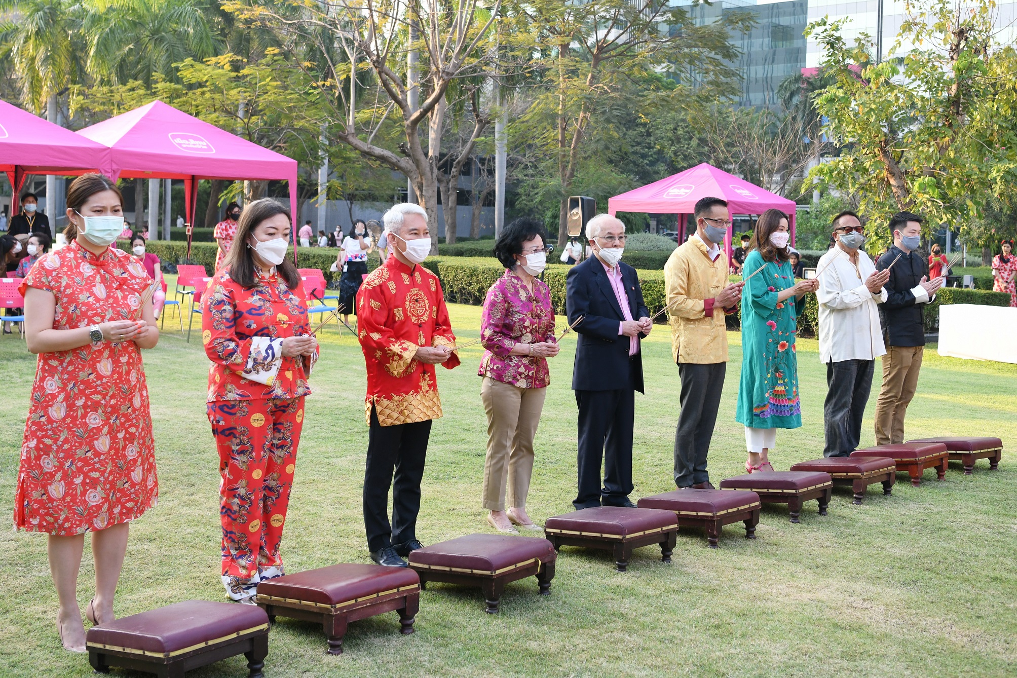 ทั้งนี้ ภายในงาน เริ่มลำดับพิธีด้วยคณะผู้บริหารอัญเชิญเทพฯ มา ณ ปรำพิธี ถวายเครื่องสักการะพระโพธิสัตว์กวนอิม และเทพเจ้ากวนอู ตามด้วยคณะผู้บริหาร ผู้มีเกียรติร่วมงาน และพนักงาน ร่วมสักการะองค์เทพ และการแสดงเชิดมังกรชมพู ปิดท้ายด้วยคณะผู้บริหาร ผู้มีเกียรติ และพนักงานร่วมพิธีลอดใต้ท้องมังกรชมพู