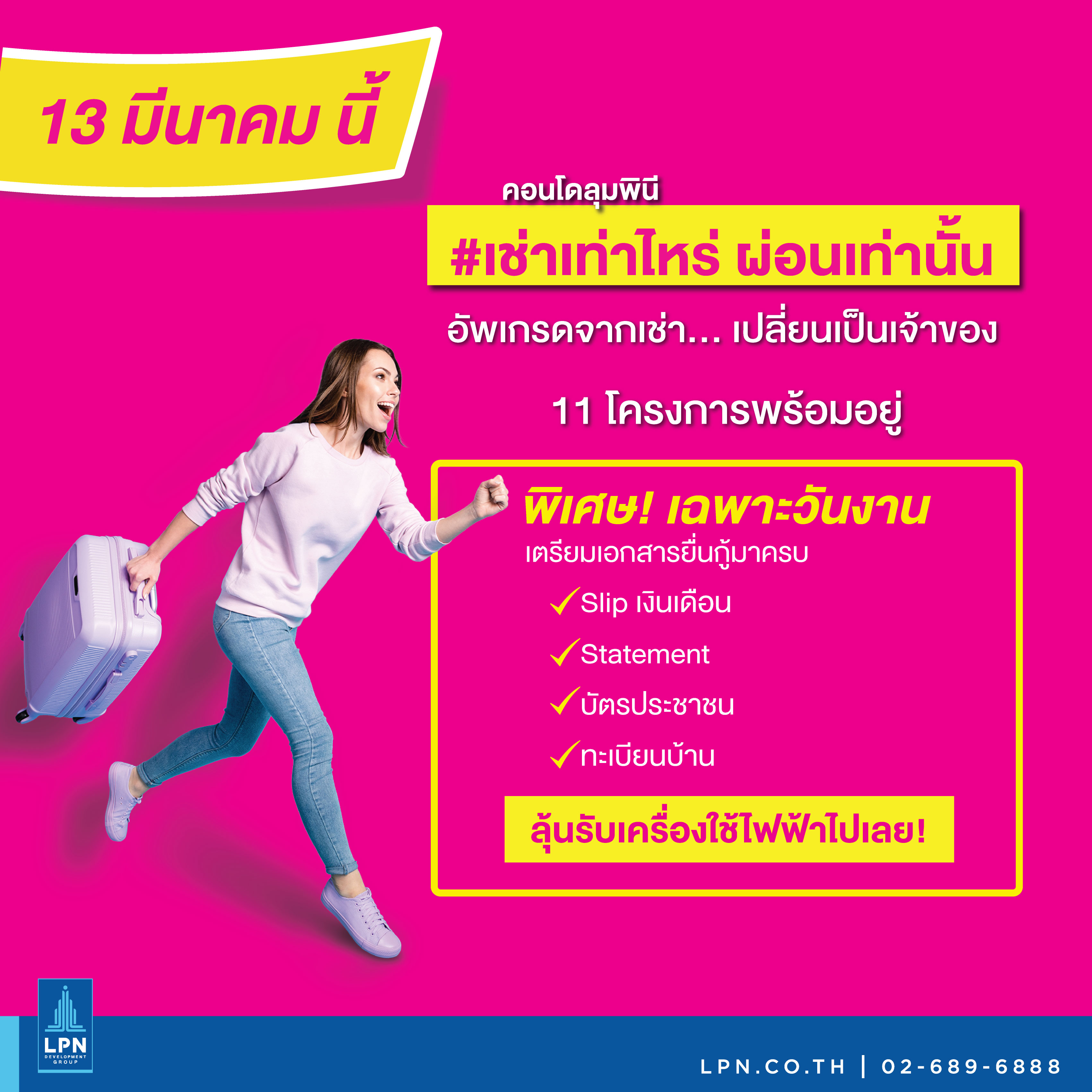 สอบถามข้อมูลเพิ่มเติมได้ที่ LPN Call Center 02-689-6888 หรือ Facebook : LPN Connect หรือแอพพลิเคชั่น LINE OA ที่ @LPNConnect