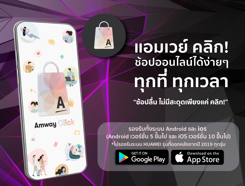การพัฒนาดิจิทัลแพลตฟอร์มใหม่ ที่สร้างประสบการณ์ช้อปปิ้งออนไลน์ให้ง่ายกว่าที่เคย ด้วยการเปิดตัวแอปพลิเคชัน Amway Click เพิ่มทางเลือกการดำเนินธุรกิจรูปแบบใหม่ให้กับนักธุรกิจแอมเวย์ เพียงคลิกแชร์ลิงก์แนะนำสินค้าที่ต้องการผ่านไปยังแพลตฟอร์มต่างๆ ทั้งไลน์ เฟซบุ๊ก และซูม ให้ลูกค้าสามารถเข้าถึงข้อมูลสินค้าได้อย่างสะดวกรวดเร็ว สมัครสมาชิกและสั่งซื้อได้ง่าย ครบ จบในแอปพลิเคชันเดียว เป็นการเชื่อมจุดเด่นของแอมเวย์ในเรื่องของความ Hi-Touch ไว้กับความ Hi-Tech ให้ทุกคนสามารถเข้าถึงแอมเวย์ได้ทุกที่ ทุกเวลา