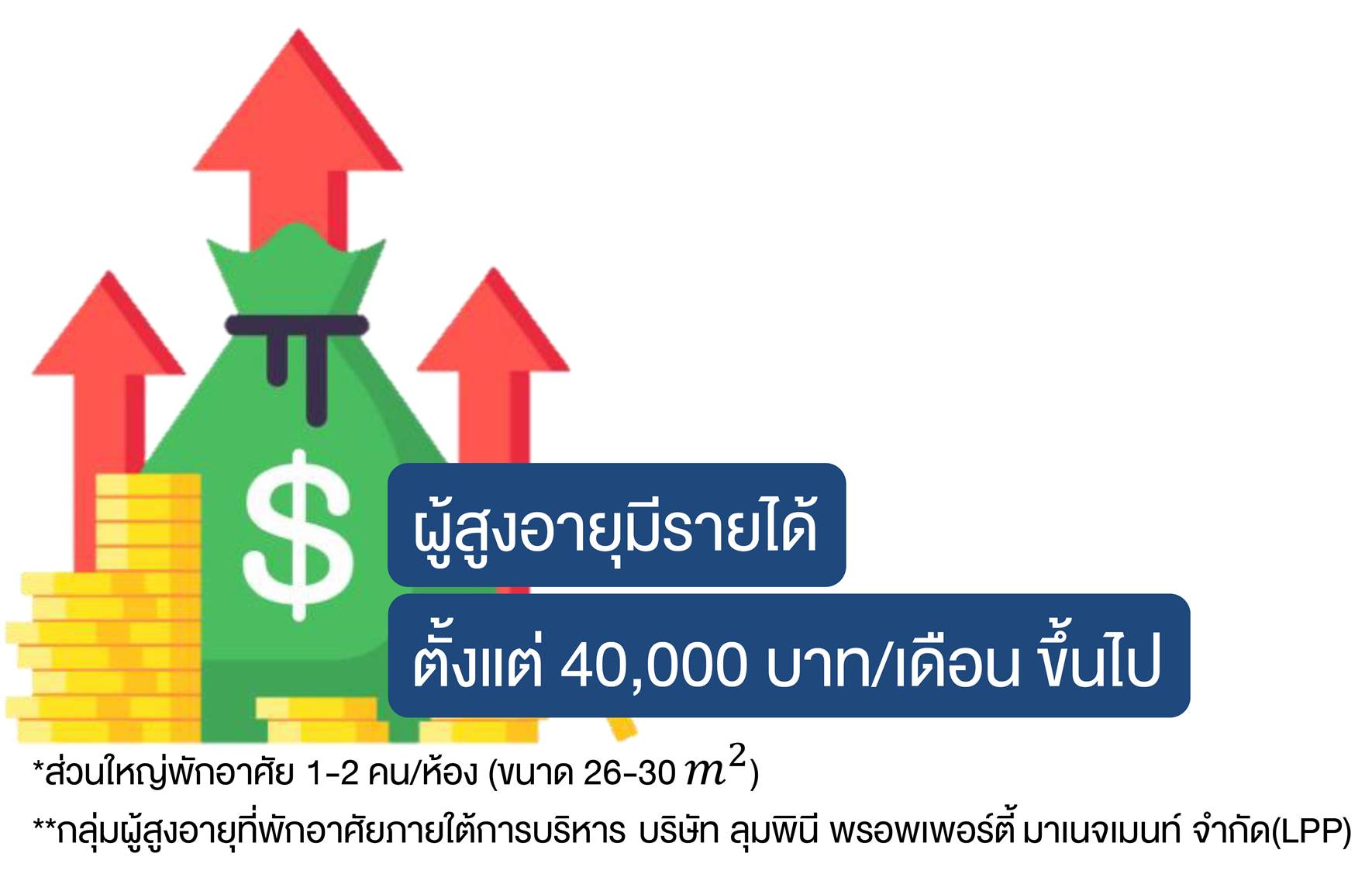 ทีมพัฒนางานบริการ(Service Development Center :SDC) ของ LPN Wisdom ได้สำรวจและวิจัยพฤติกรรมผู้สูงอายุในปี 2563 ขณะที่เกิดการแพร่ระบาดของโคโรน่าไวรัส สายพันธุ์ใหม่ 2019 (COVID-19) พบว่า กลุ่มผู้บริโภคที่เป็นผู้สูงอายุ (อายุตั้งแต่ 60 ปีขึ้นไป) ที่พักอยู่ในอาคารชุดภายใต้การบริหารของบริษัท ลุมพินี พรอพเพอร์ตี้ มาเนจเมนท์ จำกัด(LPP) เป็นกลุ่มที่มีกำลังซื้อโดยมีรายได้ไม่ต่ำกว่า 40,000 บาทต่อเดือน และมากกว่า 70% พักอาศัยอยู่ 1-2 คนในห้องขนาด 26-30 ตารางเมตร มีพฤติกรรมและความต้องการงานบริการที่แตกต่างไปจากเดิม โดยเฉพาะให้ความสำคัญกับ 4 ปัจจัยหลัก