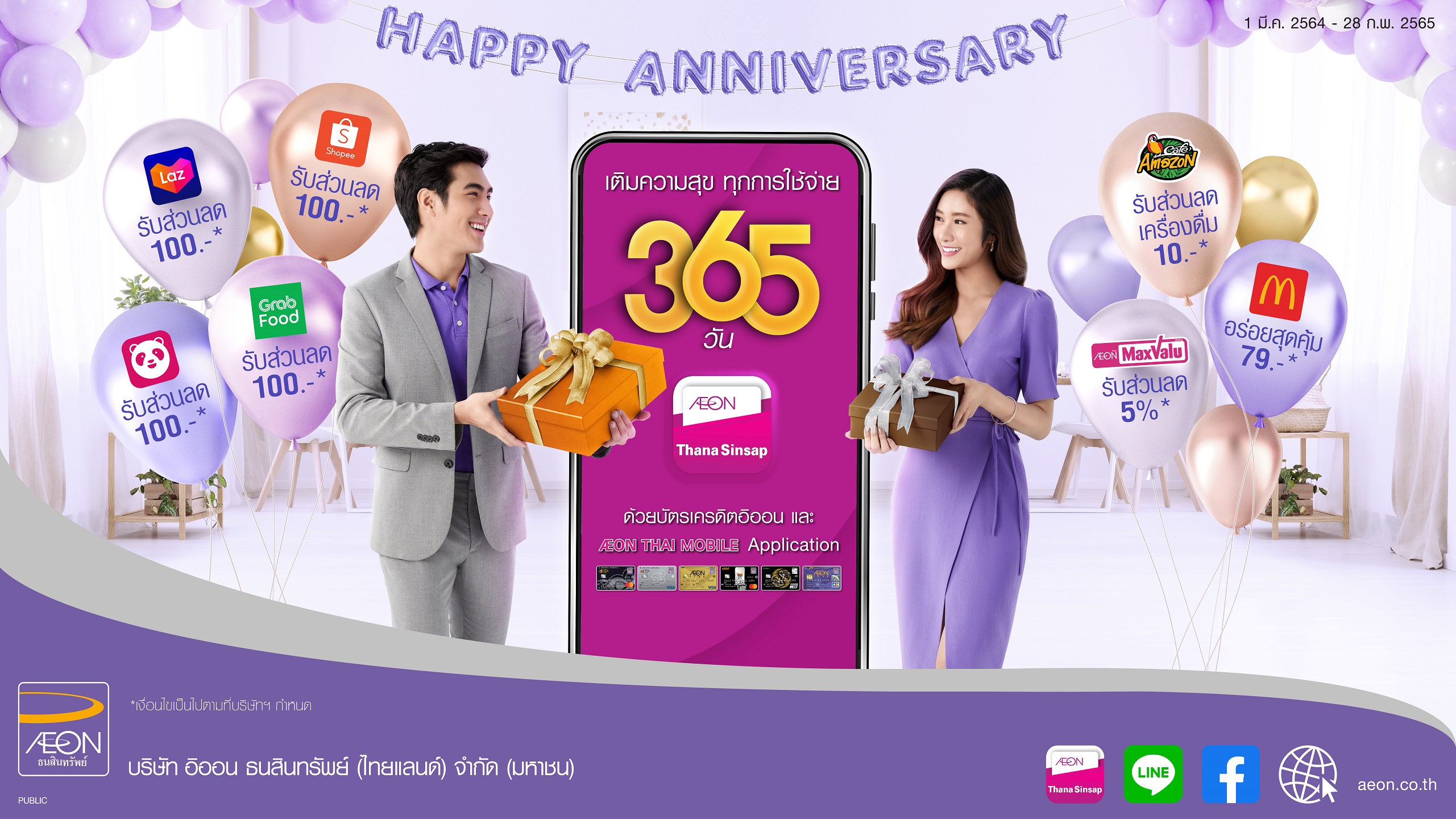 23 มีนาคม 2564 : นายนันทวัฒน์ โชติวิจิตร กรรมการบริหาร บริษัท อิออน ธนสินทรัพย์ (ไทยแลนด์) จำกัด (มหาชน) กล่าวว่า พร้อมเติมเต็มความสุขแบบต่อเนื่องให้กับลูกค้าของอิออน กับ แคมเปญ 365 วัน ของอิออนได้รับการตอบรับและประสบความสำเร็จเป็นอย่างดีตลอดระยะเวลาหลายปีที่ผ่านมา ปีนี้เรายังคงมุ่งมั่นเติมความสุขให้ลูกค้าด้วยโปรโมชั่นและสิทธิประโยชน์ต่าง ๆ ให้ผู้ถือบัตรเครดิตอิออนของเราได้เพลิดเพลินกับการใช้จ่ายกับร้านค้าพันธมิตรของเรา