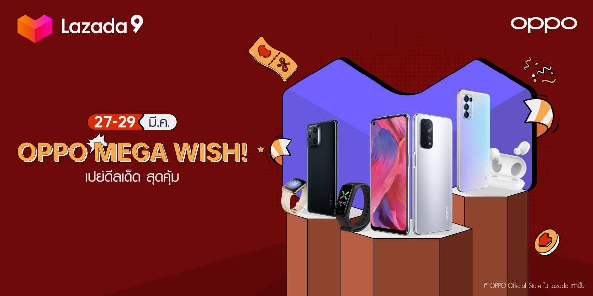 โดยแคมเปญ OPPO Mega Wish! มีเฉพาะวันที่ 27 - 29 มีนาคม 2564 เท่านั้น! ที่ OPPO Official Store ใน Lazada หรือ คลิกเลยที่ https://bit.ly/3sqOa3s