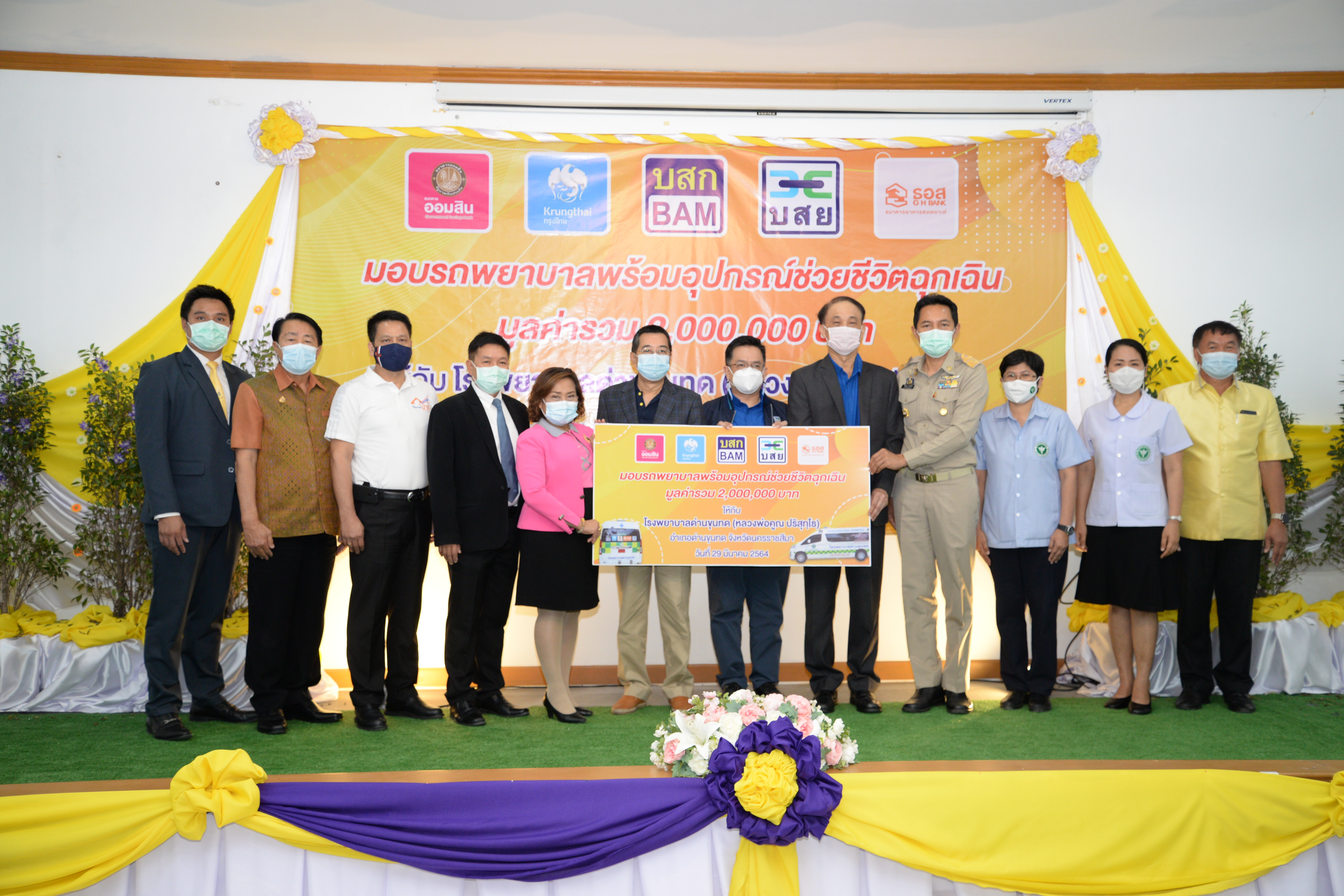 29 มีนาคม 2564 : บรรยง วิเศษมงคลชัย ประธานคณะกรรมการบริหาร และนายบัณฑิต อนันตมงคล ประธานเจ้าหน้าที่บริหาร บริษัทบริหารสินทรัพย์ กรุงเทพพาณิชย์ จำกัด (มหาชน) หรือ BAM ร่วมกับบรรษัทประกันสินเชื่ออุตสาหกรรมขนาดย่อม ธนาคารกรุงไทย จำกัด (มหาชน) ธนาคารออมสิน และธนาคารอาคารสงเคราะห์ มอบรถตู้พยาบาลพร้อมอุปกรณ์ช่วยชีวิตฉุกเฉิน ให้กับโรงพยาบาลด่านขุนทด (หลวงพ่อคูณ ปริสุทฺโธ) จังหวัดนครราชสีมา เพื่อช่วยชีวิตผู้ป่วยอุบัติเหตุและฉุกเฉิน นอกจากนี้ BAM ยังได้มอบเงินสนับสนุนซื้อกล้อง CC-TV ให้กับสถานีตำรวจภูธรโนนไทย พร้อมทั้งมอบ COMPUTER ให้กับโรงพยาบาลสีคิ้ว , ที่ว่าการอำเภอด่านขุนทด และสำนักงานสรรพากรพื้นที่ สาขาด่านขุนทด จังหวัดนครราชสีมา เมื่อวันที่ 29 มีนาคม 2564 ![]()