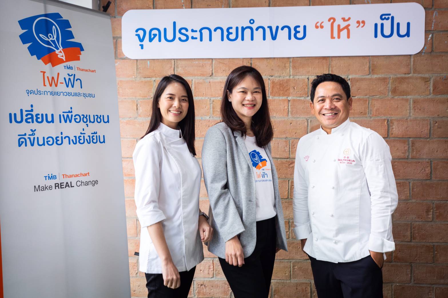 1 เมษายน 2563 : มาริสา จงคงคาวุฒิ (กลาง) หัวหน้าเจ้าหน้าที่บริหารกิจกรรมสังคมเพื่อความยั่งยืน ทีเอ็มบี เปิดตัวกิจกรรม จุดประกาย ทำขาย “ให้” เป็น จัดโดยไฟ-ฟ้า โครงการแห่งการให้ที่ยั่งยืนโดยทีเอ็มบีและธนชาต เปิดคลาสครัวสอนทำอาหารและเบเกอรี่ ฟรี!