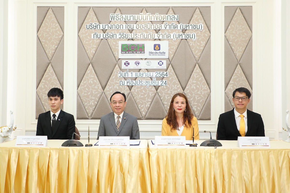 5 เมษายน 2564 : ฐวิกาญจน์ เตชทวีทรัพย์ ผู้ช่วยกรรมการผู้จัดการ บริษัทวิริยะประกันภัย จำกัด (มหาชน) พร้อมด้วย ศ.ดร.นพ.เฉลิม หาญพาณิชย์ ประธานกรรมการและประธานเจ้าหน้าที่บริหาร และ กันตพร หาญพาณิชย์ ประธานเจ้าหน้าที่บริหาร ฝ่ายการตลาด บริษัท บางกอก เชน ฮอสปิทอล จำกัด (มหาชน) ได้ร่วมลงนามบันทึกข้อตกลงความร่วมมือ (MOU) ด้านการพัฒนาผลิตภัณฑ์ประกันสุขภาพ เพื่อยกระดับการเข้าถึงการรักษาของโรงพยาบาลในเครือ BCH หรือ บริษัท บางกอก เชน ฮอสปิทอล จำกัด (มหาชน) อันประกอบด้วย กลุ่มโรงพยาบาลเวิลด์เมดิคอล กลุ่มโรงพยาบาลเกษมราษฎร์ อินเตอร์เนชั่นแนล กลุ่มโรงพยาบาลเกษมราษฎร์ และ กลุ่มโรงพยาบาลการุญเวช