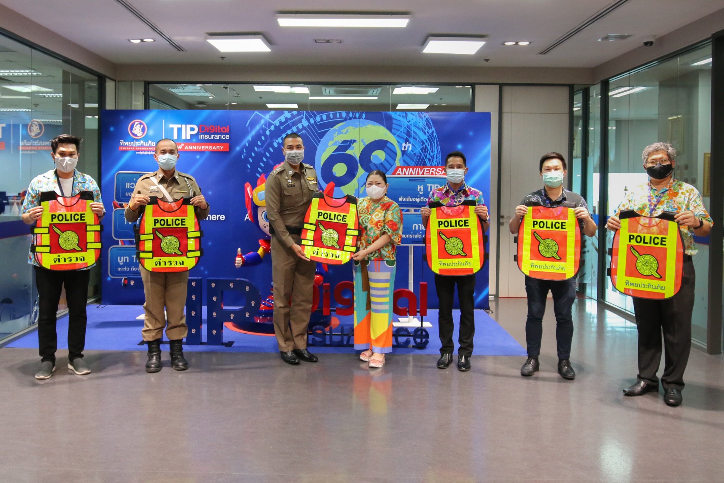 7 เมษายน 2564 : คุณวิชชุดา ไตรธรรม ที่ปรึกษากรรมการผู้จัดการใหญ่ บริษัท ทิพยประกันภัย จำกัด (มหาชน) มอบเสื้อสะท้อนแสง ให้กับสถานีตำรวจวังทองหลาง เพื่อใช้ในการปฏิบัติหน้าที่ และอำนวยความสะดวกการจราจรให้กับประชาชน โดยเฉพาะในช่วงเทศกาลสงกรานต์ ที่กำลังจะมาถึง ซึ่งจะมีประชาชนเดินทางออกต่างจังหวัด กลับภูมิลำเนาเป็นจำนวนมาก ตามโครงการทิพยประกันภัย ห่วงใยทุกชีวิตในสังคม โดยมี พ.ต.ท.สืบศักดิ์ ผันสืบ รอง ผกก.จร. สน.วังทองหลาง รับมอบ ณ อาคารทิพยประกันภัย สำนักงานใหญ่ พระราม 3 ![]()