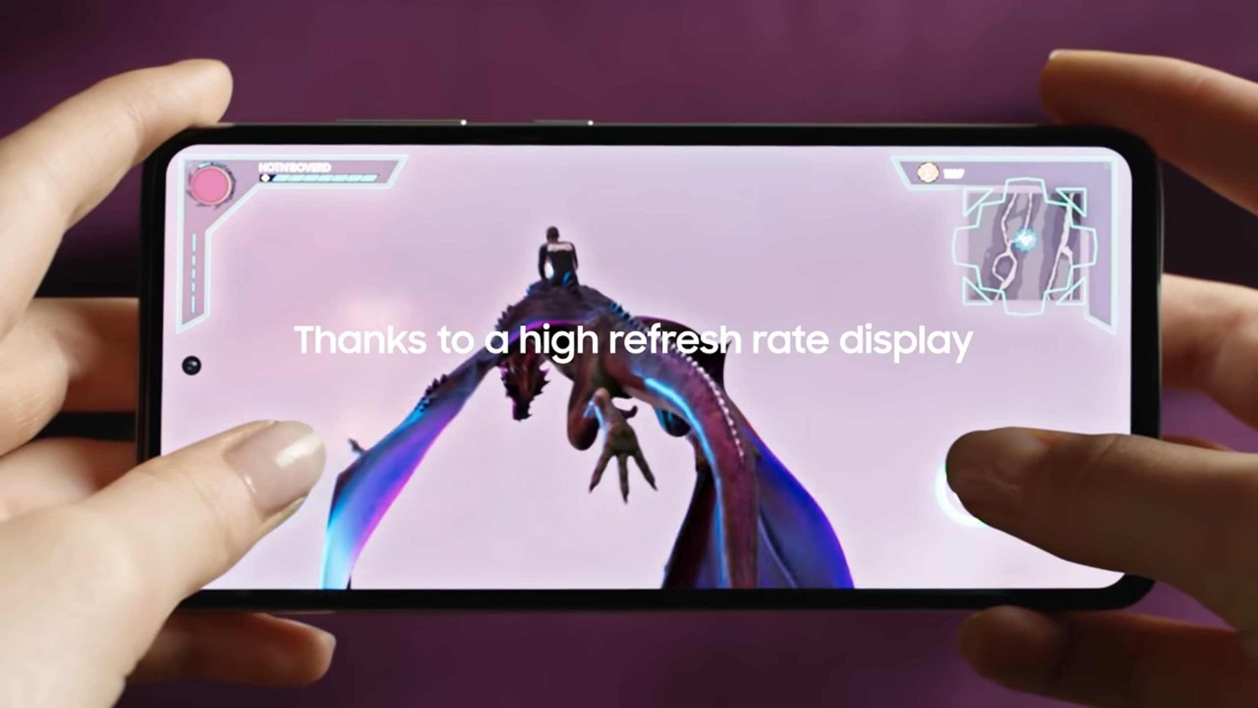 ประสิทธิภาพของจอก็สำคัญไม่แพ้กัน Galaxy A72 จึงมาพร้อมกับรีเฟรชเรทที่ 90Hz ให้การตอบสนองไว ภาพกราฟฟิกลื่นไหลไม่กระตุก และสามารถโฟกัสข้าศึกได้ชัดขึ้นด้วยหน้าจอ Infinity-O ขนาดใหญ่เต็มตาถึง 6.7 นิ้ว คุณภาพระดับ Super AMOLED FHD+ ให้ภาพสวยคมชัด สมจริง พร้อมปรับความสว่างได้สูงสุดถึง 800 nits[1] นอกจากนี้ สำหรับใครที่นิยมเล่นแบบมาราธอน ซัมซุงขอส่งตัวช่วย #Saveสายตา ด้วยเทคโนโลยี Eye Comfort Shield[2] ช่วยลดความเมื่อยล้าของดวงตาแม้เล่นเกมต่อเนื่อง สามารถลดแสงสีฟ้าได้มากกว่าหน้าจอแบบ LCD ถึง 43% เลยทีเดียว