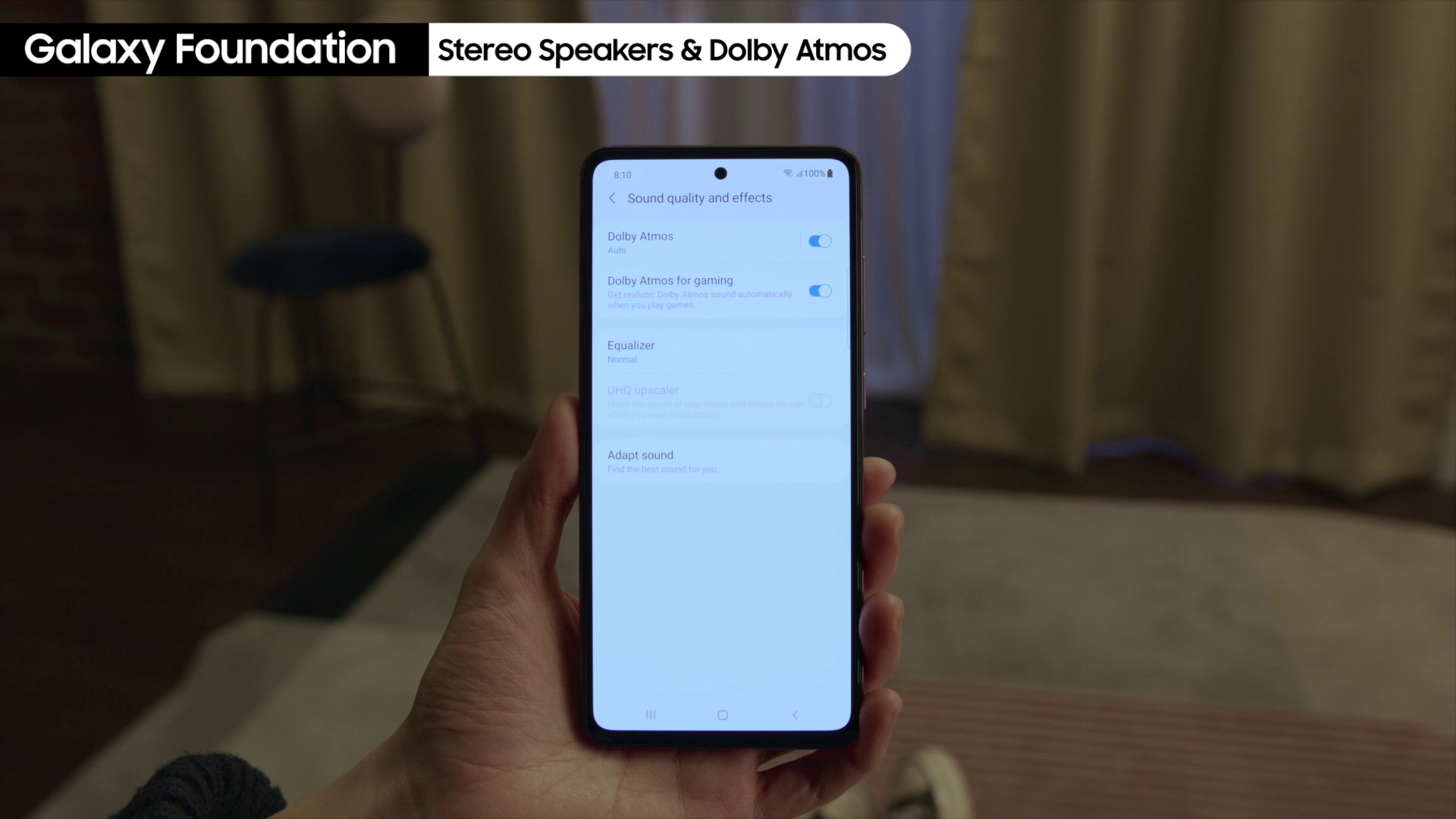 ครั้งแรกของสมาร์ทโฟนตระกูล Galaxy A ที่มาพร้อมลำโพงสเตอริโอแบบคู่ มอบพลังเสียงที่กระหึ่มกว่าที่เคย เพิ่มระดับความดังสูงกว่ารุ่นก่อนถึง 43% พร้อมด้วย Dolby Atmos มอบคุณภาพเสียงที่นุ่มลึก เก็บรายละเอียดเสียงได้สมจริงแบบรอบด้านแม้ไม่ได้ใช้หูฟัง และที่พิเศษไปกว่านั้น ยังมีโหมด Dolby Atmos for Gaming โดยเฉพาะ ช่วยยกระดับประสบการณ์การเล่นเกมได้เต็มอรรถรสยิ่งขึ้นด้วยมิติเสียงที่คมชัด สามารถแยกเสียงศัตรูจากทิศทางต่างๆ ได้ดียิ่งขึ้น ที่สำคัญ ขอแอบกระซิบว่า Galaxy A72 ยังมาพร้อมกับสิ่งที่หลายคนคิดถึงอย่างช่องหูฟัง 3.5 mm อีกด้วย!