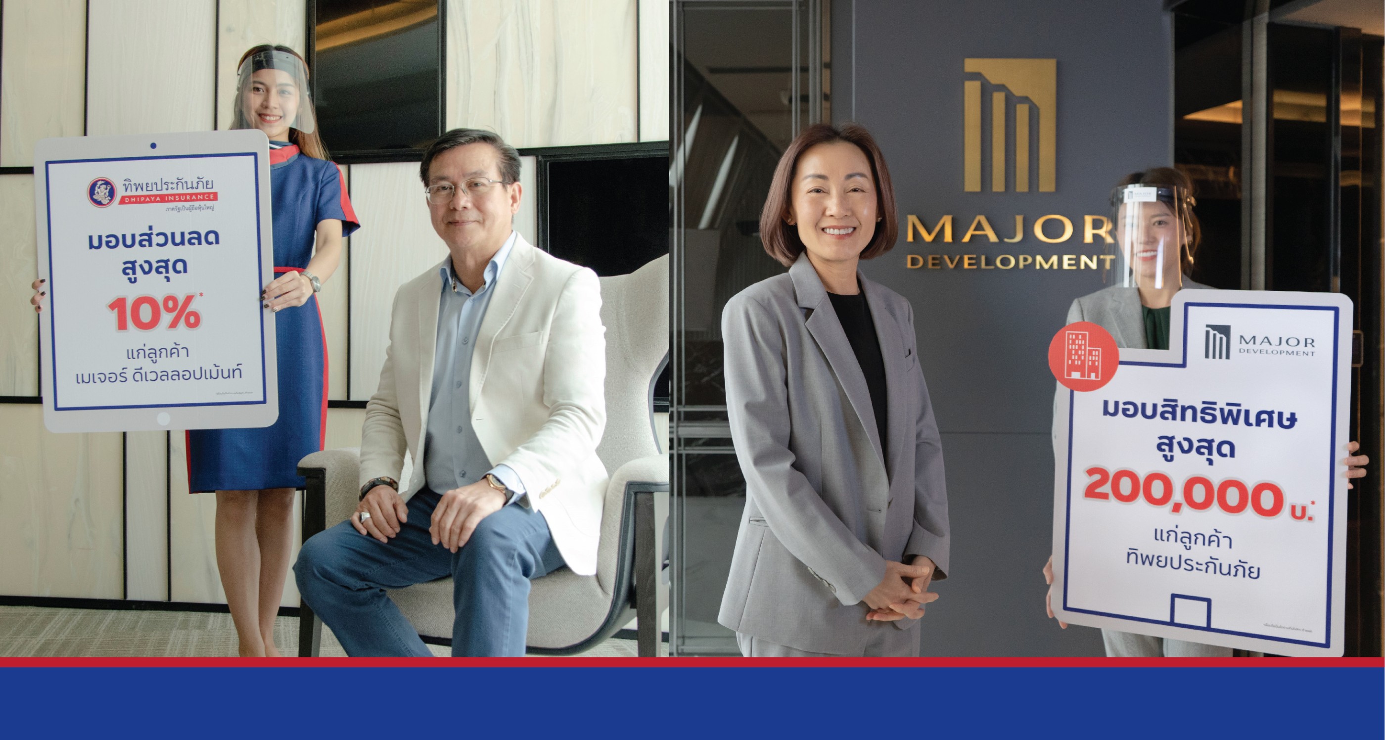 ด้าน ดร.สมพร สืบถวิลกุล กรรมการผู้จัดการใหญ่ บริษัท ทิพยประกันภัย จำกัด (มหาชน) กล่าวว่า “ทิพยประกันภัยมีความยินดีเป็นอย่างยิ่งที่ได้ร่วมกับ บริษัท เมเจอร์ ดีเวลลอปเม้นท์ จำกัด (มหาชน) ผู้นำธุรกิจอสังหาริมทรัพย์ในการสร้างสรรค์สิ่งดีๆ เพื่อลูกค้า ด้วยการมอบสิทธิประโยชน์ให้กับลูกค้าของทั้ง 2 ฝ่าย โดยลูกบ้านเมเจอร์ ดีเวลลอปเม้นท์ จะได้รับสิทธิพิเศษเป็นส่วนลด 10% สำหรับการซื้อประกันของทิพยประกันภัย ผ่าน www.tipinsure.com อาทิ