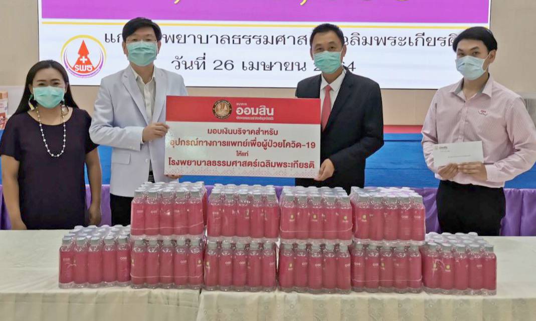 พร้อมมอบเงิน น้ำดื่ม อุปกรณ์ช่วยเหลือทางการแพทย์ และอุปกรณ์เครื่องใช้จำเป็นให้แก่โรงพยาบาลต่างๆ อาทิ โรงพยาบาลธรรมศาสตร์เฉลิมพระเกียรติ โรงพยาบาลปากเกร็ด และโรงพยาบาลหลายแห่งในจังหวัดเชียงใหม่, ลำพูน, เชียงราย, ขอนแก่น, อุบลราชธานี และสุราษฎร์ธานี เป็นต้น
