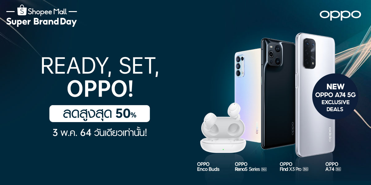 สำหรับใครที่สนใจสมาร์ทโฟนสุดฮิตและอุปกรณ์เสริมสุดคุ้มจาก OPPO ไม่ควรพลาด! โดย Super Brand Day มีเฉพาะที่วัน3 พฤษภาคม 2564 เท่านั้น! ที่ OPPO Official Store ใน Shopee หรือ คลิกเลยที่ https://bit.ly/3fpDDSS