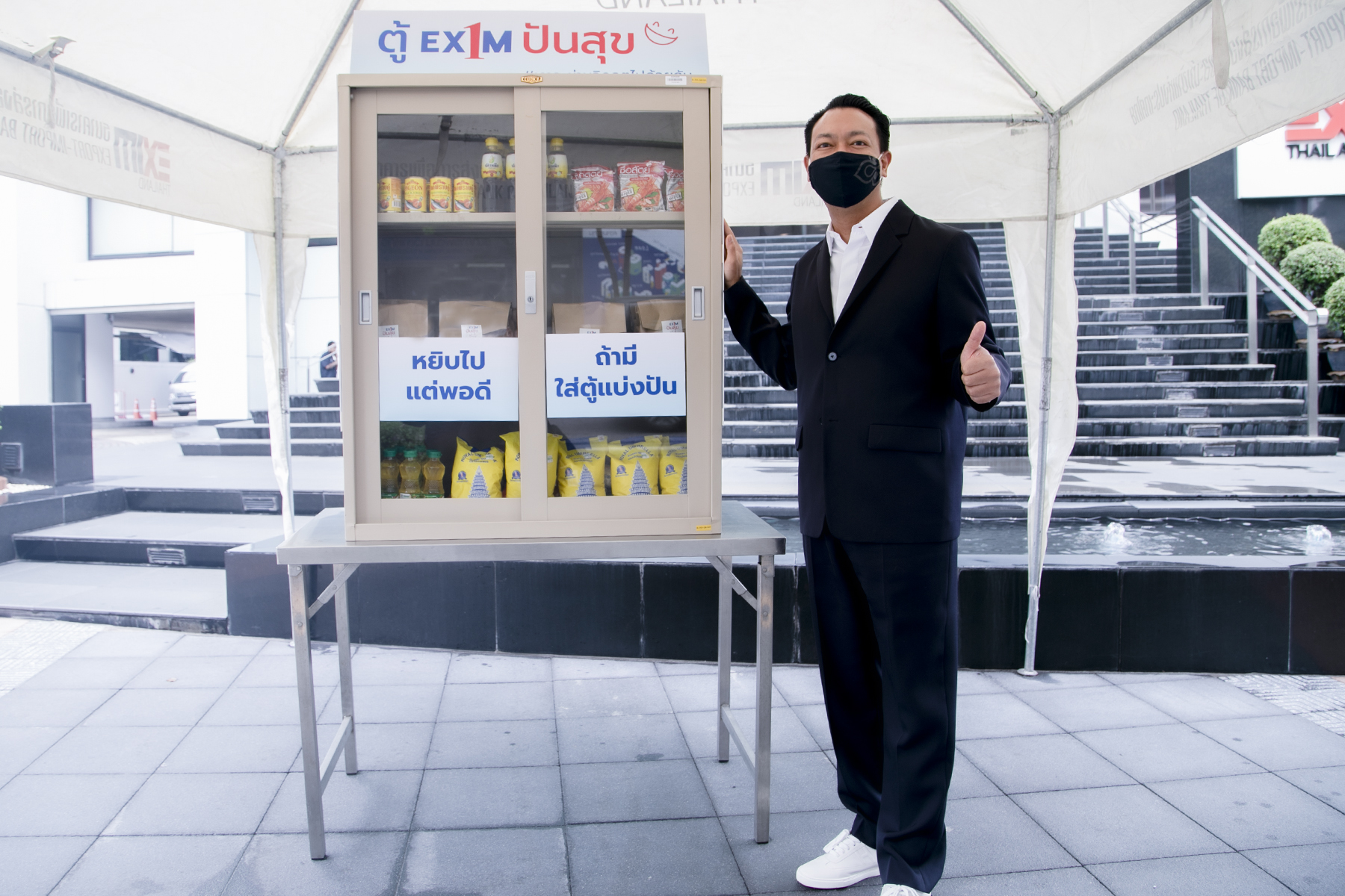 30 เมษายน 2564 : ดร.รักษ์ วรกิจโภคาทร กรรมการผู้จัดการ EXIM BANK เปิดโครงการ “ตู้ EXIM 1 ปันสุข” ภายใต้โครงการด้านความรับผิดชอบต่อสังคม (CSR) “EXIM เพื่อสุขภาพชุมชน” โดยจัดให้มีตู้อาหารแห้งที่ได้รับการสนับสนุนจากธนาคารและเพื่อนพนักงาน ตลอดจนประชาชนในพื้นที่ เพื่อเยียวยาความเดือดร้อนของประชาชนผู้มีรายได้น้อยในชุมชนพญาไท ณ ด้านหน้าและด้านหลัง EXIM BANK สำนักงานใหญ่ เมื่อวันที่ 29 เมษายน 2564 ![]()