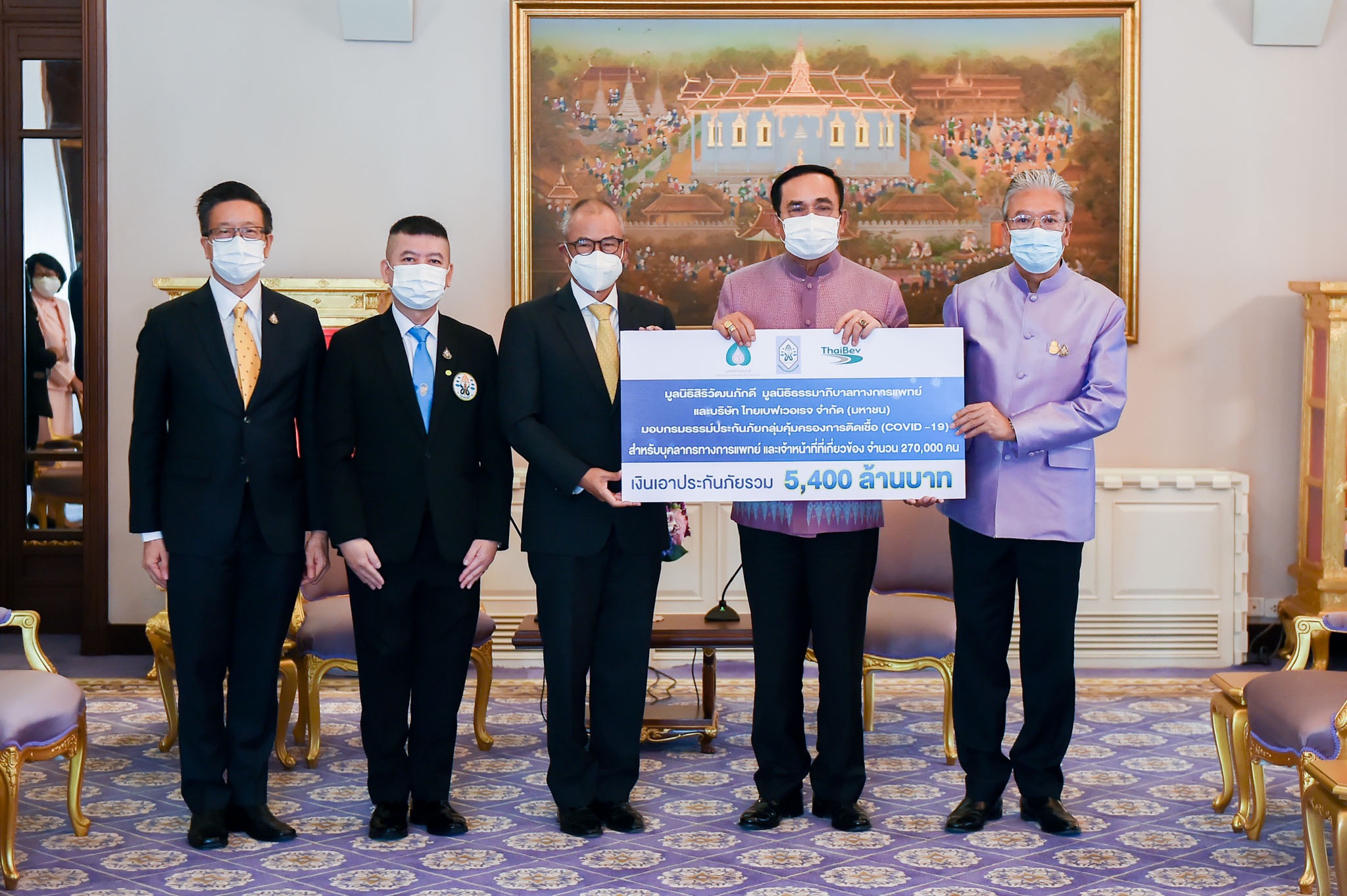 โดยมีสำนักงาน คปภ. สมาคมประกันวินาศภัยไทย และสมาคมประกันชีวิตไทย มูลนิธิสิริวัฒนภักดี มูลนิธิธรรมาภิบาลทางการแพทย์ และบริษัท ไทยเบฟเวอเรจ จำกัด (มหาชน) ร่วมกันสนับสนุนค่าเบี้ยประกันภัย ทั้งหมดกว่า 38,000,000 บาท เพื่อคุ้มครองภัยจากการติดเชื้อ COVID-19 ให้กับบุคลากรทางการแพทย์ของภาครัฐและเจ้าหน้าที่ที่ปฏิบัติงานใกล้ชิดผู้ติดเชื้อ COVID-19 จำนวน 270,000 ราย วงเงินความคุ้มครอง 275,410 ล้านบาท โดยแต่ละรายจะได้รับความคุ้มครองจาก 3 กรมธรรม์ ดังนี้
