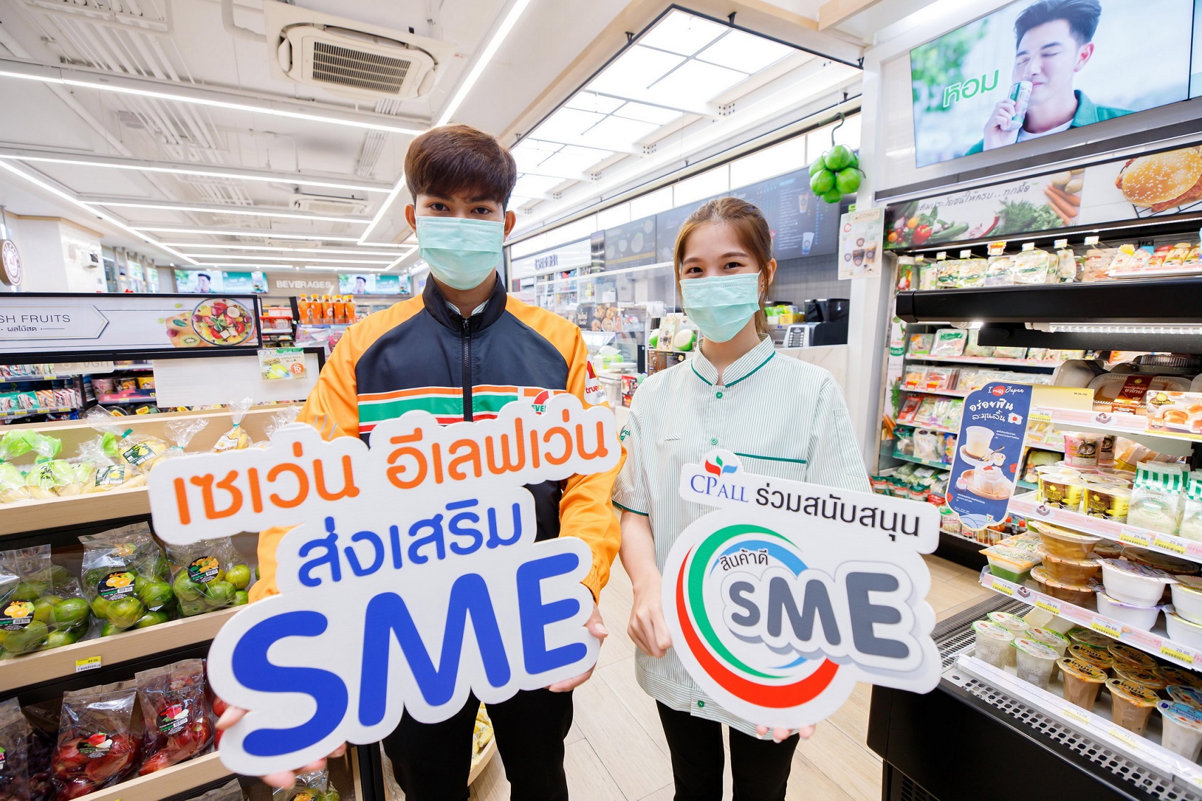 ปัจจุบันบริษัทมีสินค้าเอสเอ็มอีวางจำหน่ายอยู่ในร้านเซเว่น อีเลฟเว่นมากกว่า 3,000 รายการ ครอบคลุมทุกกลุ่มสินค้า อาทิ สินค้าอาหารและเครื่องดื่ม ของใช้ สินค้าความงาม ฯลฯ ซีพี ออลล์ มีความมุ่งมั่นที่จะส่งเสริมเอสเอ็มอีอย่างต่อเนื่องและจริงจัง เพื่อเป็นกองหนุนแห่งโอกาสสำหรับเอสเอ็มอีไทยให้สามารถผ่านพ้นวิกฤต ยกระดับสินค้าชุมชนสู่ระดับประเทศและสามารถเติบโตอย่างยั่งยืน” ![]()