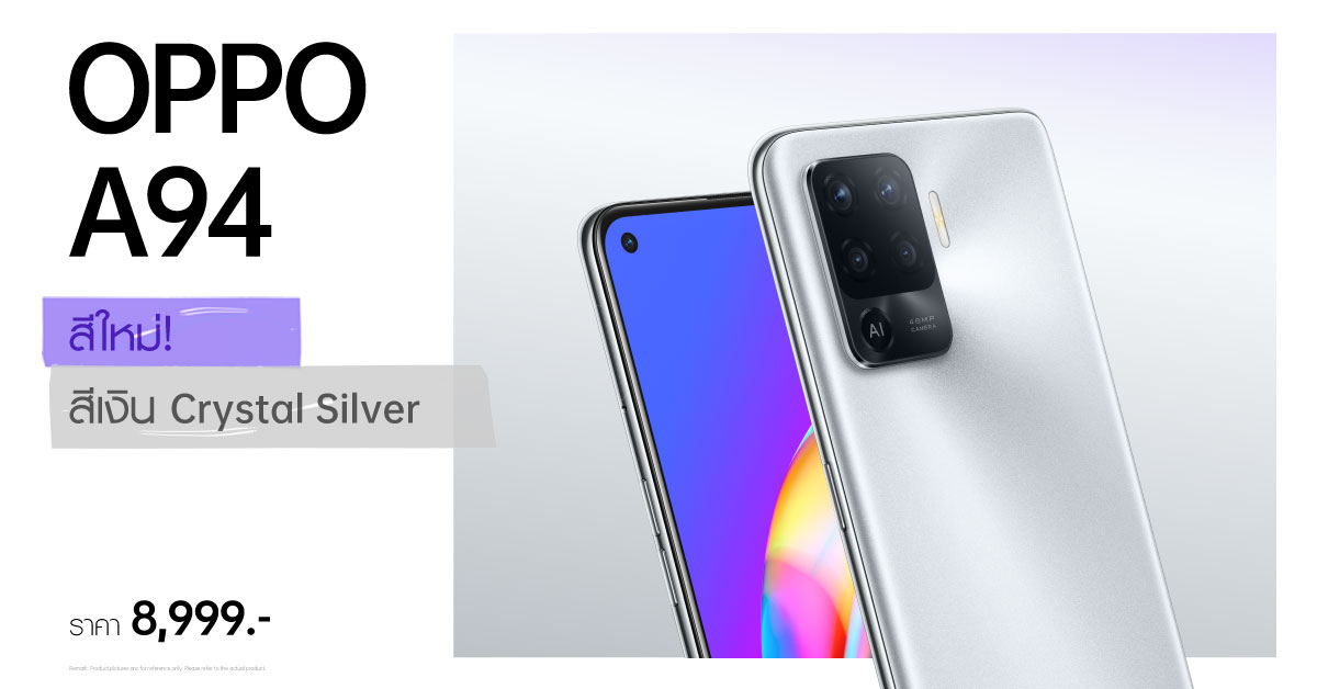 OPPO A94 สีใหม่! สีเงิน Crystal Silver สีม่วง Fantastic Purple และ สีดำ Fluid Black วางจำหน่ายแล้ววันนี้ในราคาสุดคุ้มเพียง 8,999 บาท ที่ OPPO Brand Shop ทุกสาขา และตัวแทนจำหน่ายทั่วประเทศ ![]()