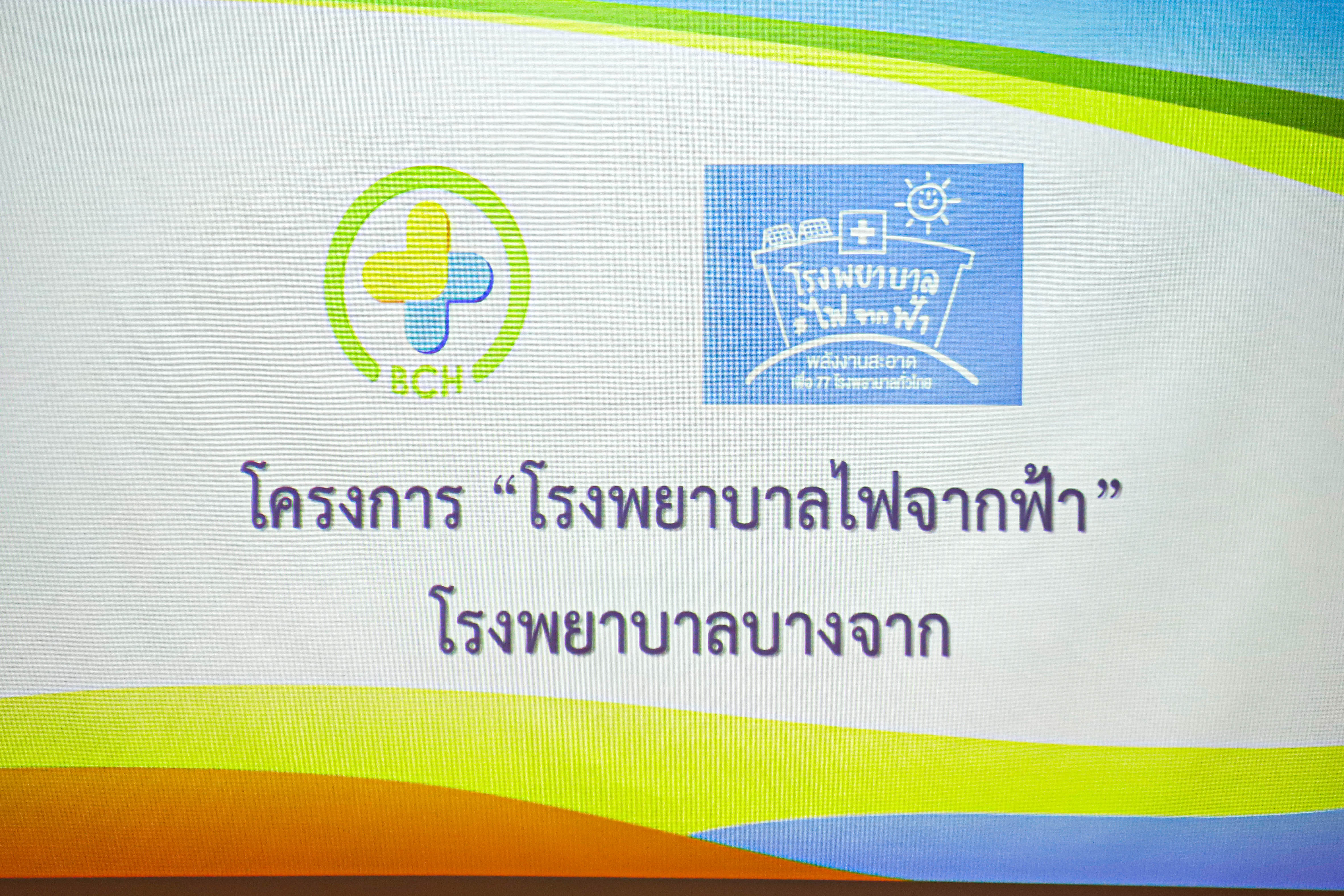ทั้งนี้ โรงพยาบาลบางจาก ตั้งอยู่ที่อำเภอพระประแดง จังหวัดสมุทรปราการ เป็นโรงพยาบาลขนาด 60 เตียง ซึ่งในแต่ละปีมีค่าใช้จ่ายที่เป็นค่าไฟฟ้าจำนวนปีละกว่า 4,000,000 บาท ทั้งนี้ หากสามารถติดตั้งแผงโซลาร์เซลล์ได้ตามเป้าหมายจะลดภาระค่าใช้จ่ายได้ปีละประมาณ 700,000 บาท โดยตั้งเป้าขอรับบริจาคเงินเพื่อโครงการ "ไฟจากฟ้า" จำนวน 4,000,000 บาท เพื่อติดตั้งแผงโซลาร์เซลล์ของโรงพยาบาลทั้งระบบ ![]()