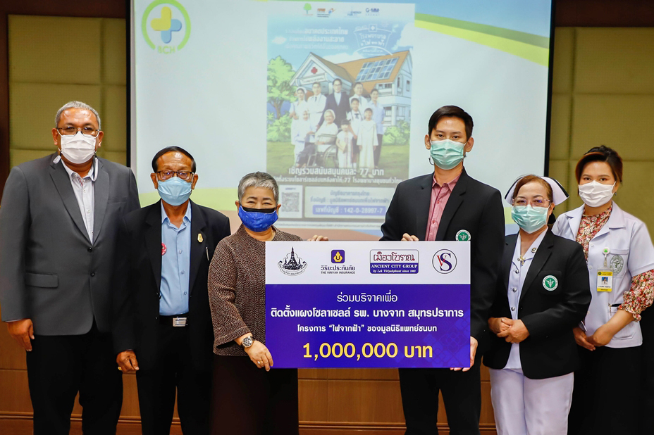 24 พฤษภาคม 2564 : นายแพทย์วันฉัตร ชินสุวาเทย์ รักษาการผู้อำนวยการโรงพยาบาลบางจาก จังหวัดสมุทรปราการ รับมอบเงินบริจาคจำนวน 1,000,000 บาท (หนึ่งล้านบาทถ้วน) จากธุรกิจในเครือวิริยะพันธุ์ โดยมี บริษัท กลุ่มเมืองโบราณ บริษัท ธนบุรีประกอบรถยนต์ จำกัด บริษัท วิริยะซัพพลาย จำกัด บริษัท จี.เอ็น.พี.จำกัด และบริษัท วิริยะประกันภัย จำกัด(มหาชน) ในการติดตั้งแผงโซลาร์เซลล์ให้กับโรงพยาบาลบางจากในโครงการ "ไฟจากฟ้า" ของมูลนิธิแพทย์ชนบท โดยมี กานดา วัฒนายิ่งสมสุข ที่ปรึกษาฝ่ายการตลาดผู้ผลิตและผู้แทนจำหน่ายรถยนต์ บริษัท วิริยะประกันภัย จำกัด (มหาชน) พร้อมทั้งผู้บริหารกลุ่มเมืองโบราณ เป็นผู้แทนร่วมส่งมอบเงินบริจาคดังกล่าว
