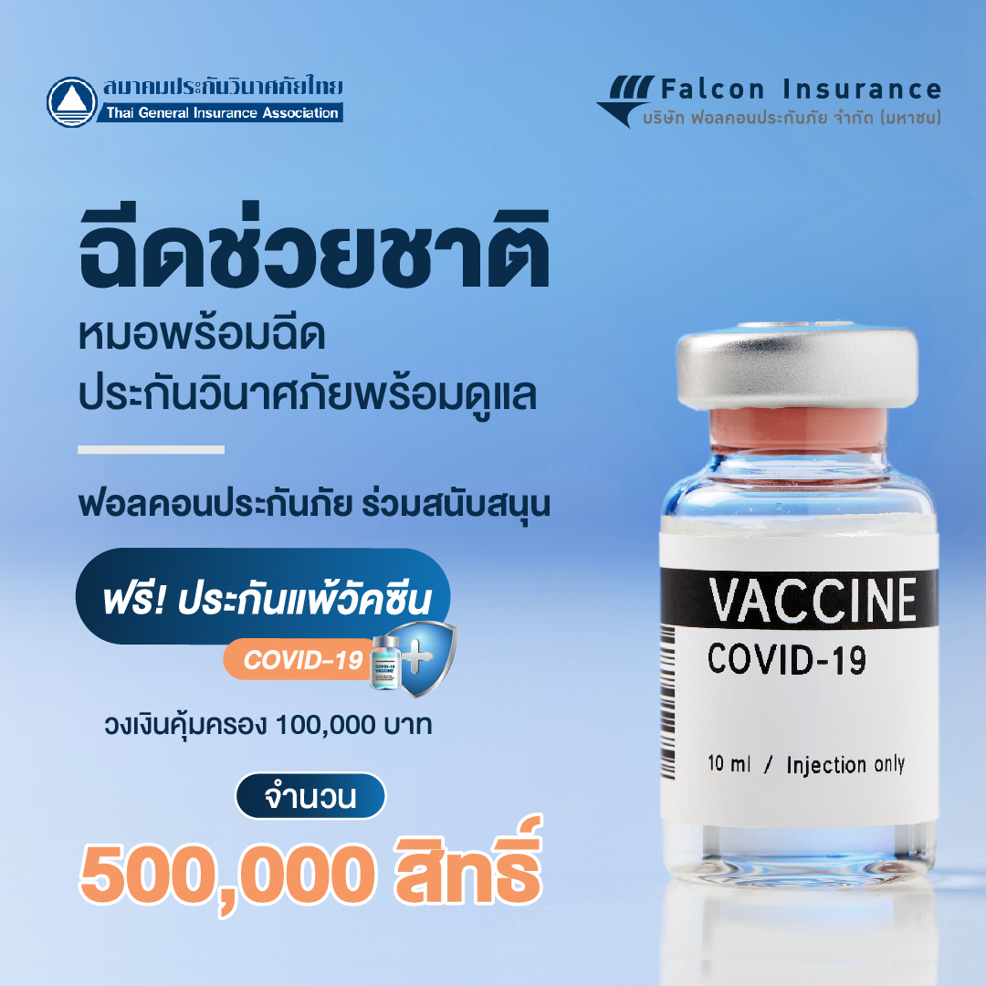 “ฉีดช่วยชาติ หมอพร้อมฉีด ประกันวินาศภัยพร้อมดูแล” ของสมาคมประกันวินาศภัย เพื่อสนับสนุนให้คนไทยเข้ารับวัคซึนโควิด-19 เพื่อสร้างภูมิคุ้มกันให้ตนเองและลดความรุนแรงของการแพร่ระบาดของเชื้อไวรัสโควิด-19 เพื่อให้ประเทศไทยสามารถกลับสู่ภาวะปกติได้โดยเร็ว ซึ่งฟอลคอนได้ร่วมมอบความคุ้มครองประกันแพ้วัคซีนโควิด-19 จำนวน 500,000 สิทธิ์ ให้กับประชาชนทั่วไปฟรี เพื่อรณรงค์และสร้างความมั่นใจให้ประชาชนเข้ารับการฉีดวัคซีนโควิด-19 โดยโครงการนี้จะสามารถช่วยลดการแพร่ระบาดของเชื้อไวรัสโควิด-19 ได้อย่างยั่งยืน สร้างความเชื่อมั่นให้กับนักท่องเที่ยวต่างชาติ ซึ่งจะส่งผลในการฟื้นฟูเศรษฐกิจของประเทศไทยสามารถฟื้นตัวได้โดยเร็ว”