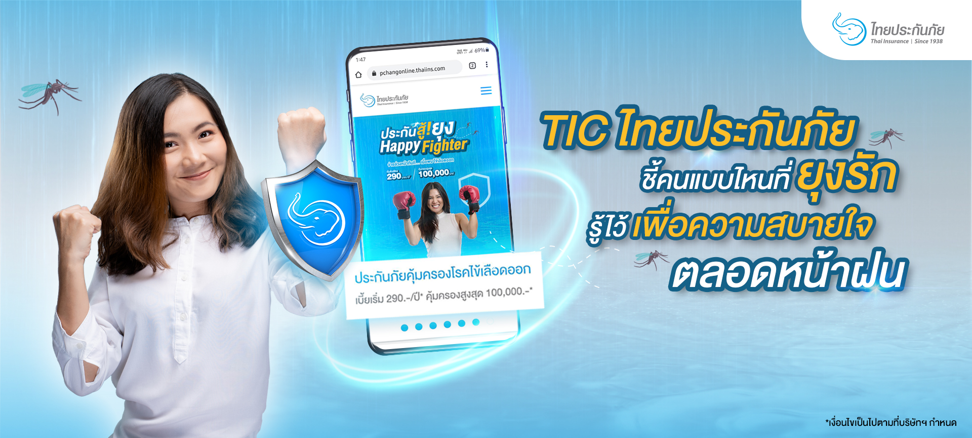 ประกันภัยสู้ยุง Happy Fighter พร้อมปกป้องคุณจากยุงร้ายแล้ววันนี้ทุกช่องทาง ทั้งบน E-Commerce ที่พี่ช้างออนไลน์ https://pchangonline.thaiins.com/ แอปพลิเคชัน UCHOOSE จากกรุงศรีคอนซูมเมอร์ และ My GPF Application จากกองทุนบำเหน็จบำนาญข้าราชการ (กบข.)