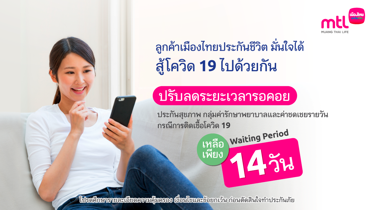 31 พฤษภาคม 2564 : นายสาระ ล่ำซำ กรรมการผู้จัดการและประธานเจ้าหน้าที่บริหาร บริษัท เมืองไทยประกันชีวิต จำกัด (มหาชน) เปิดเผยว่า เมืองไทยประกันชีวิต ตอกย้ำการดำเนินงานภายใต้นโยบาย “MTL Trusted Lifetime Partner” ที่พร้อมดูแลและเดินเคียงข้างในทุกช่วงของชีวิต ล่าสุดเพื่อเป็นการเสริมความอุ่นใจแก่ลูกค้าให้มากยิ่งขึ้น จากสถานการณ์การแพร่ระบาดของโรคติดเชื้อไวรัสโคโรนา 2019 (COVID-19) บริษัทฯ ได้ทำการปรับลดระยะเวลาที่ไม่คุ้มครอง (Waiting Period) กรณีการเจ็บป่วยที่เป็นผลมาจากการติดเชื้อโควิด 19 จากเดิม 30 วัน เหลือเพียง 14 วัน นับตั้งแต่วันเริ่มมีผลคุ้มครองตามสัญญาเพิ่มเติม สำหรับความคุ้มครองกลุ่มค่ารักษาพยาบาล และค่าชดเชยรายวัน ที่มีวันเริ่มมีผลคุ้มครองตั้งแต่วันที่ 28 พฤษภาคม -31 ธันวาคม 2564