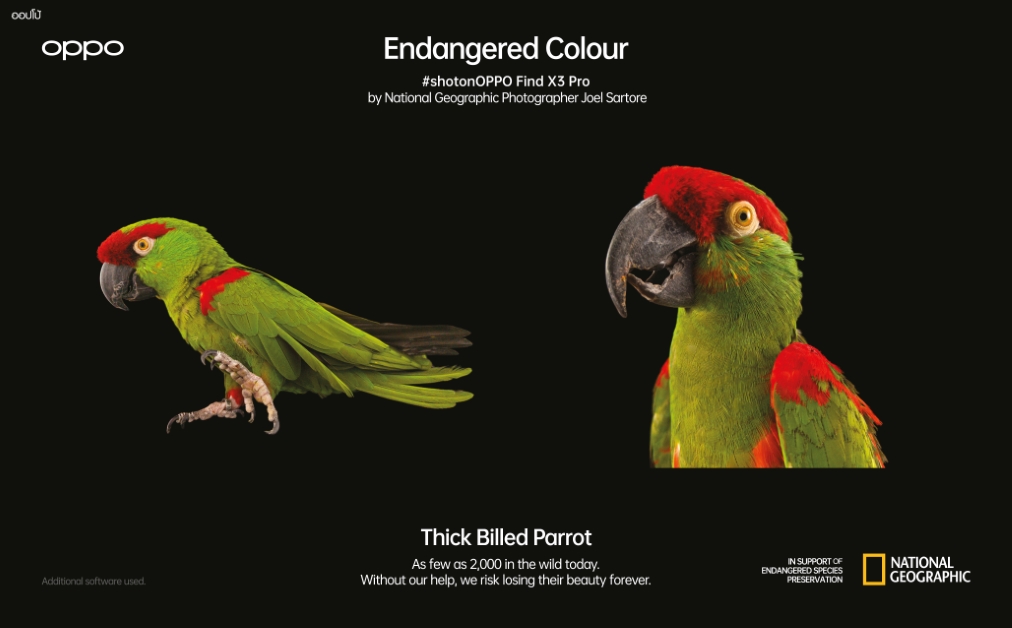 1 มิถุนายน 2564 : OPPO ร่วมมือกับ National Geographic ตอกย้ำพลังของสีสันและความเปราะบางของธรรมชาติที่ไม่ควรมองข้าม ผ่านแคมเปญ “Endangered Colours” กับการเก็บภาพสิ่งมีชีวิตที่กำลังสูญพันธุ์ เพื่อตอกย้ำความสำคัญของการมีอยู่ของธรรมชาติ พร้อมแสดงให้เห็นถึงสีสันที่หายากที่สุดก่อนที่จะสายเกินไป