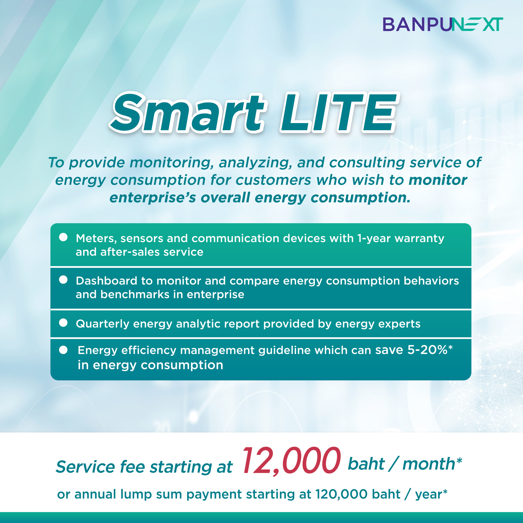 สมาร์ทไลท์ (Smart LITE) สำหรับผู้ประกอบการที่ต้องการเห็นภาพรวมการใช้พลังงานภายในกิจการ หรือต้องการเปรียบเทียบการใช้พลังงานระหว่างสาขา หรือกิจการที่มีโครงสร้างคล้ายกันหลายแห่ง มีค่าไฟฟ้าประมาณ 50,000 – 150,000 บาทต่อเดือน ค่าบริการรายปีเริ่มต้น 120,000 บาท หรือ 12,000 บาทต่อเดือน โดยผลลัพธ์เมื่อทำตามคำแนะนำ สามารถช่วยลดการใช้ไฟฟ้าได้เฉลี่ย 5 - 20%