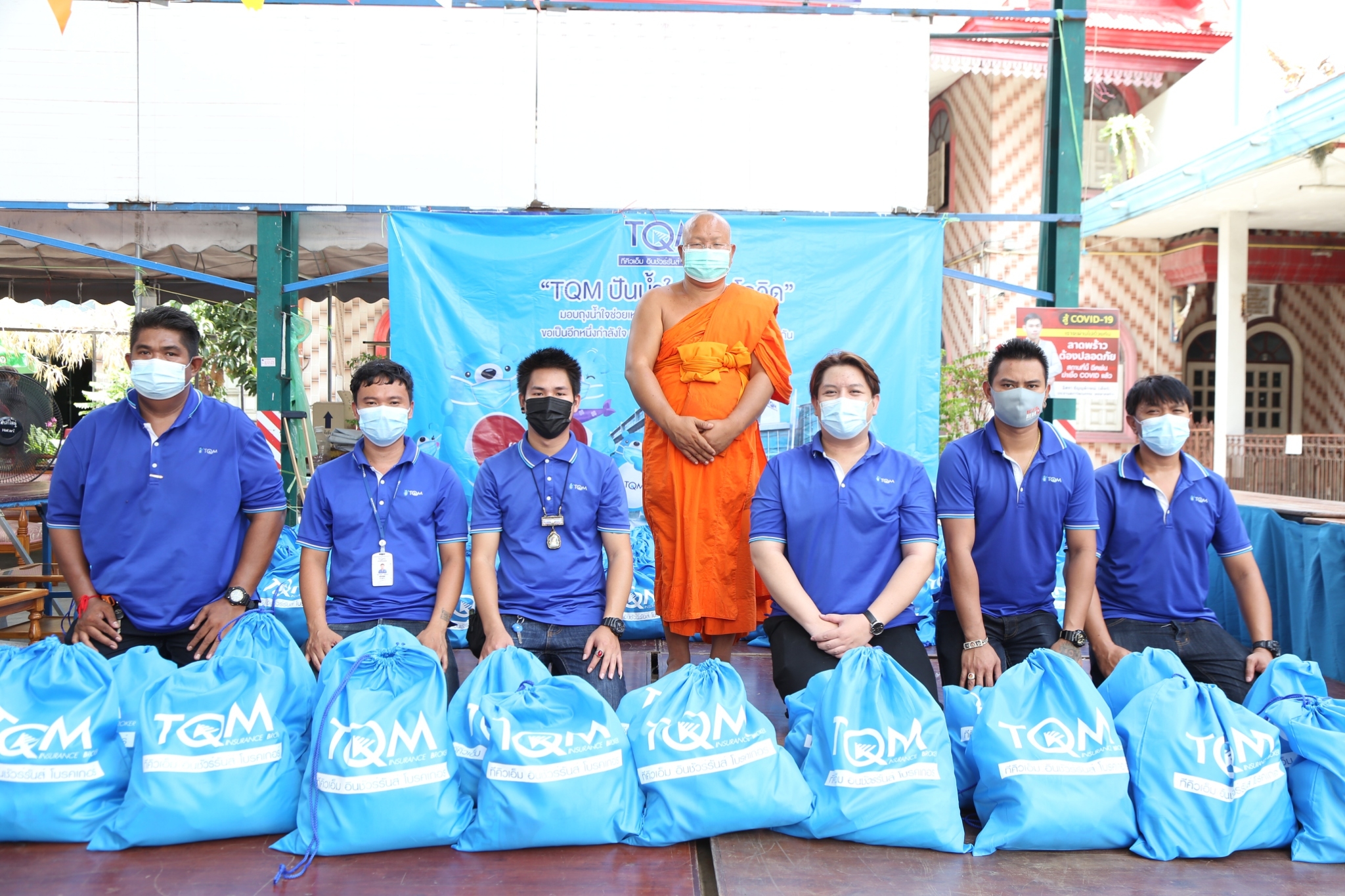 8 มิถุนายน 2564 : ดร.อัญชลิน พรรณนิภา ประธาน บริษัท ทีคิวเอ็ม อินชัวร์รันส์ โบรคเกอร์ จำกัด เปิดเผยว่า ทีคิวเอ็มเห็นถึงความเดือดร้อนของคนไทยที่ต้องเผชิญกับสถานการณ์ไวรัสโควิด-19 ตามนโยบายในการดูแลและตอบแทนต่อสังคม จึงได้จัดทำถุงยังชีพซึ่งภายในถุงบรรจุด้วยสิ่งของเครื่องใช้ทั้งอุปโภคและบริโภคที่จำเป็นต่อการดำรงชีวิตของประชาชน อาทิ ข้าวสาร ปลากระป๋อง บะหมี่กึ่งสำเร็จรูป เจลแอลกอฮอล์ และหน้ากากอานามัย โดยได้จัดทำทั้งสิ้นจำนวน 1,000 ถุง เพื่อแจกจ่ายให้แก่ประชาชนที่อาศัยอยู่ในชุมชนที่อยู่ในบริเวณใกล้เคียงสำนักงานใหญ่ของบริษัท เพื่อหวังบรรเทาความเดือดร้อนและช่วยเหลือผู้ที่ได้รับผลกระทบจากการแพร่ระบาดของไวรัสโควิด-19