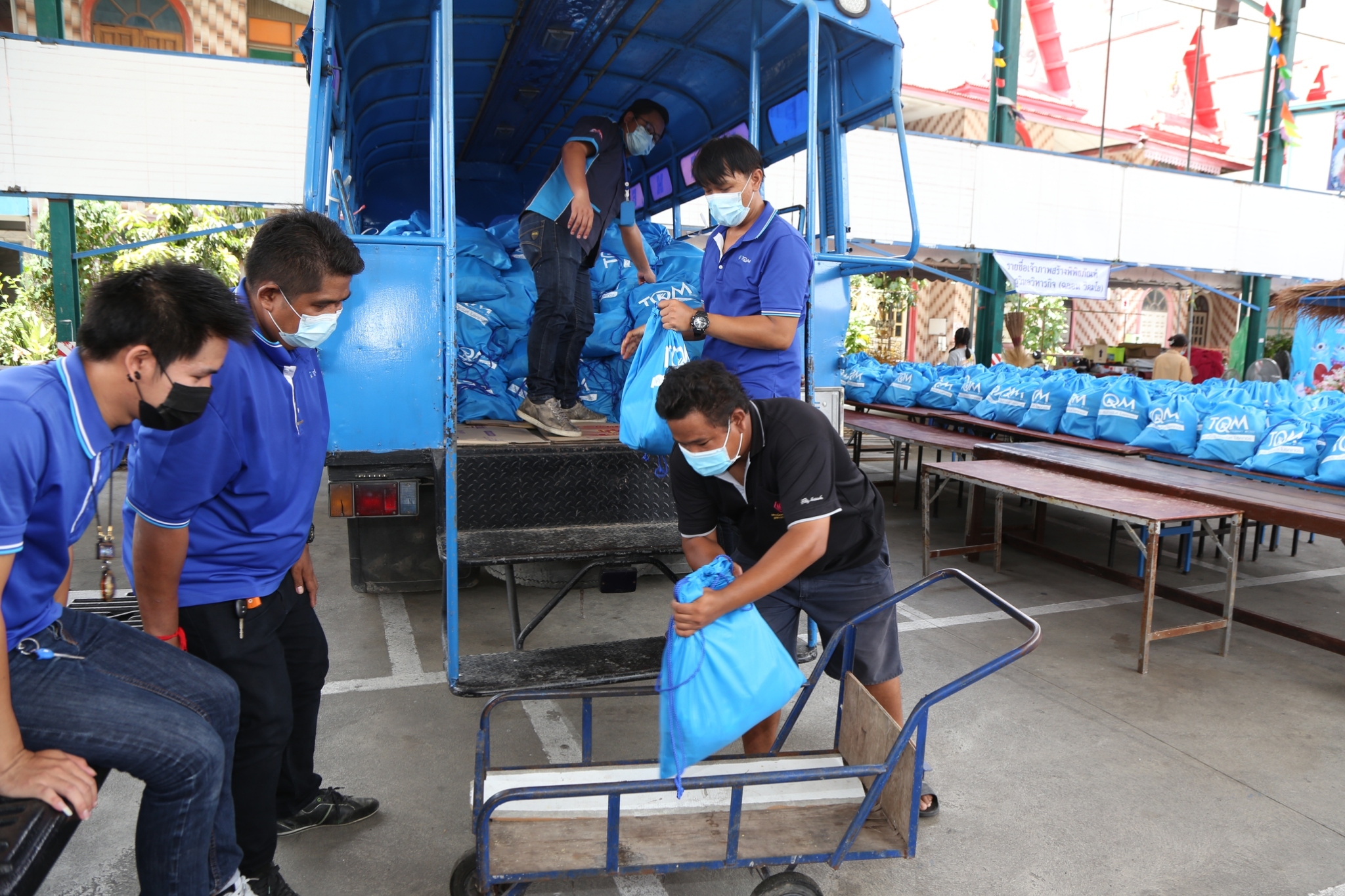 ทั้งนี้ บริษัท ฯ ยังได้ร่วมกับวัดลาดปลาเค้าในการเป็นศูนย์กลางเพื่อนำถุงยังชีพส่วนหนึ่งกระจายไปยังประชาชนในชุมชนที่อยู่ระแวกใกล้เคียงวัด “ทีคิวเอ็ม ได้มีโอกาสบริจาคอาหารและของใช้สิ่งจำเป็น แม้จะเพียงเล็กน้อยแต่ก็มีค่ามากในยามนี้ เพียงแค่นี้ ผู้ที่มีโอกาสให้ก็มีความสุขแล้วครับ ต้องยอมรับว่าการระบาดโควิดรอบนี้ สร้างความยากลำบากทางเศรษฐกิจมากกระทบกันหมด ผู้ที่ยังมีงานทำ มีรายได้ แม้อาจจะน้อยลงบ้าง ก็ถือว่ายังดีมีอีกหลายๆ อาชีพ ที่ต้องตกงาน ว่างงาน และไม่รู้ว่าอีกนานเพียงใดที่จะกลับสู่ภาวะปกติ