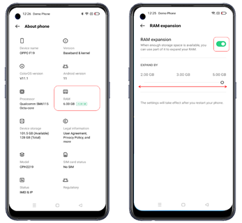 โดย RAM Expansion ของ OPPO จะช่วยให้ผู้ใช้สามารถปรับเปลี่ยน ROM ที่มีอยู่บนสมาร์ทโฟนเป็นหน่วยความจำเสมือน (RAM) ได้ พร้อมสามารถปรับเปลี่ยนระดับการขยายได้อิสระ ซึ่งผู้ใช้ OPPO A94, OPPO A74 5G และ OPPO A74 จะสามารถปรับระดับการขยายของ RAM ในระดับ 2GB, 3GB และ 5GB ได้บนสมาร์ทโฟนของตน