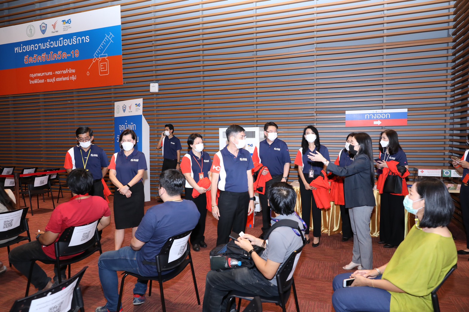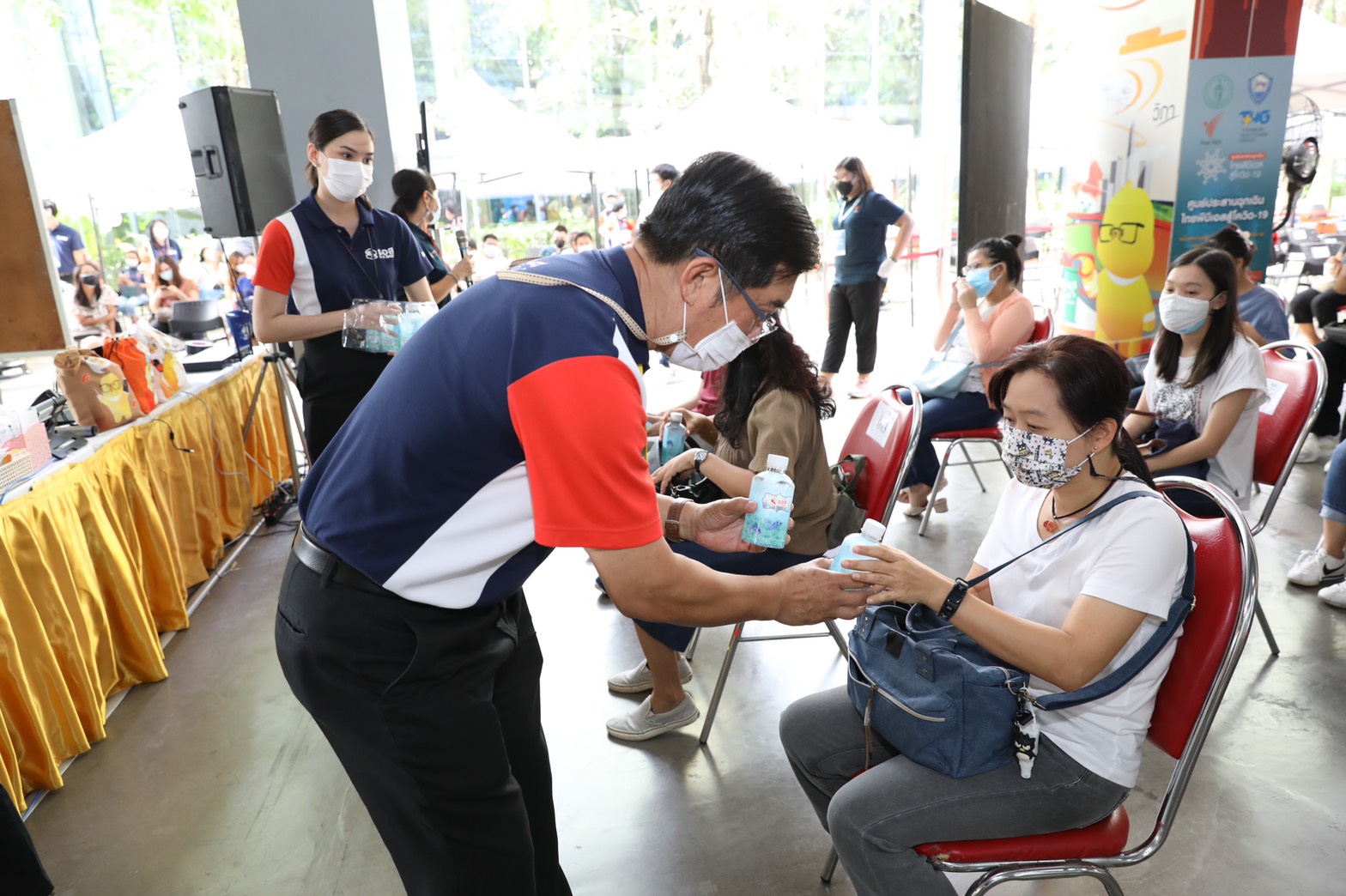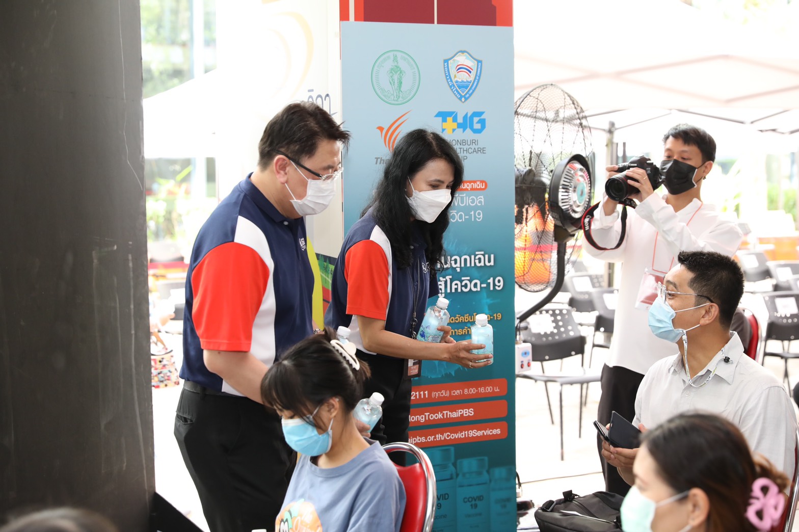 สายคล้องที่จัดทำโดยพนักงานจิตอาสาของธนาคาร เพื่อมอบให้กับประชาชนที่เข้ารับบริการฉีดวัคซีน และผู้ปฏิบัติงานของโรงพยาบาล โดยมี นายนพดล ศรีหทัย บรรณาธิการบริหาร สำนักข่าวไทยพีบีเอส (Thai PBS) ให้เกียรติเป็นผู้รับมอบ ซึ่งสถานีโทรทัศน์ไทยพีบีเอส เป็น 1 ใน 25 หน่วยความร่วมมือบริการฉีดวัคซีนโควิด-19 กรุงเทพมหานคร-หอการค้าไทย สามารถให้บริการฉีดวัคซีนได้ประมาณ 1,000 - 2,000 คน/วัน