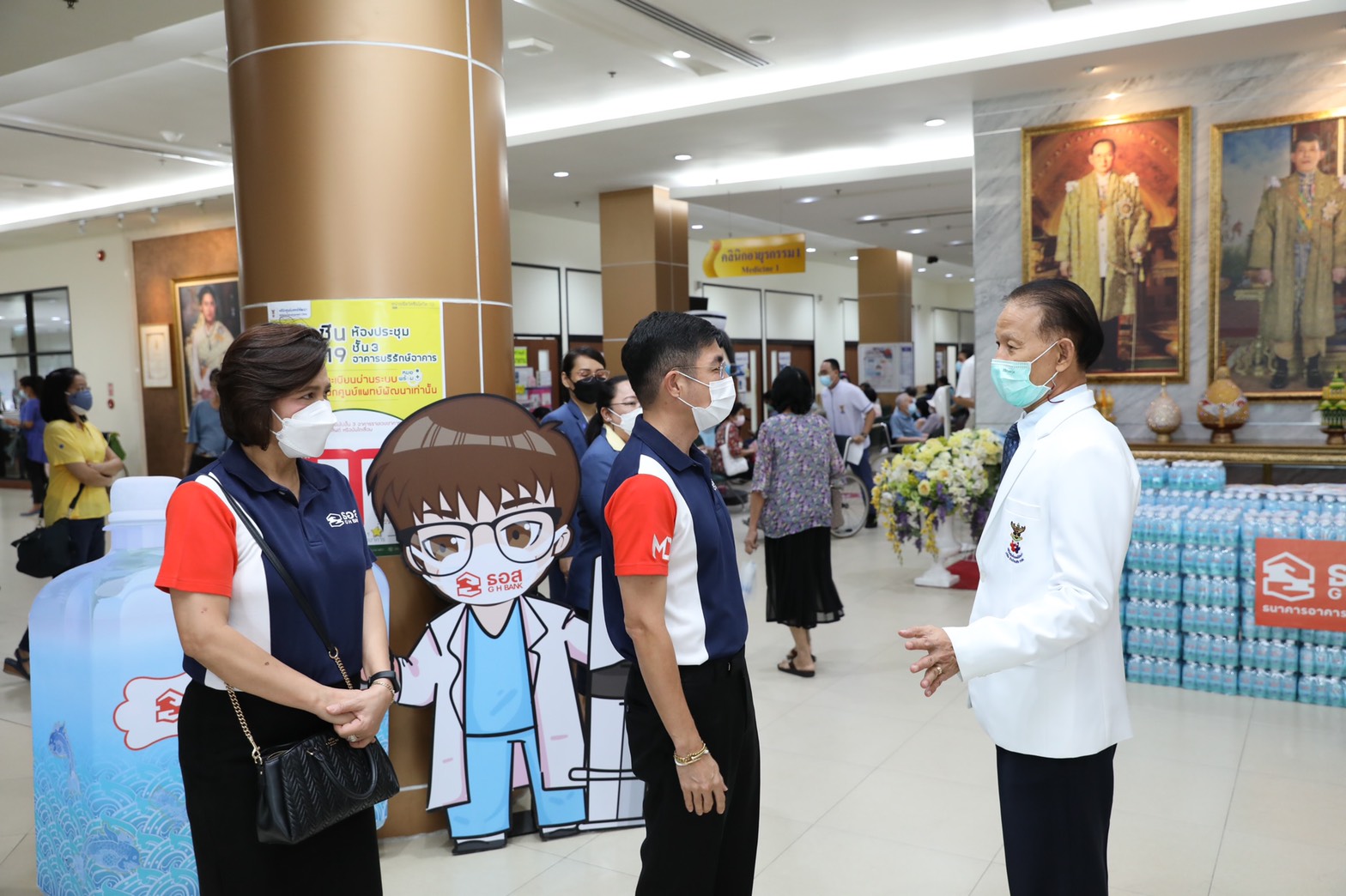 การสนับสนุนงบประมาณ 200,000 บาท ให้แก่โรงพยาบาลพระมงกุฎเกล้า สำหรับจัดซื้อเครื่องฮีโมเปอร์ฟิวชั่นใช้ในการรักษาผู้ป่วยที่ติดเชื้อ COVID-19และมอบน้ำดื่มธนาคารจำนวน 5,000 ขวด รวมถึงหน้ากากอนามัยพร้อมสายคล้อง การสนับสนุนงบประมาณ 135,000 บาท ให้แก่โรงพยาบาลเวชการุณย์รัศมิ์ เพื่อจัดหาเก้าอี้นั่งจุดพักคอย พร้อมเสื้อทีมของโรงพยาบาล น้ำดื่มธนาคารจำนวน 20,000 ขวด