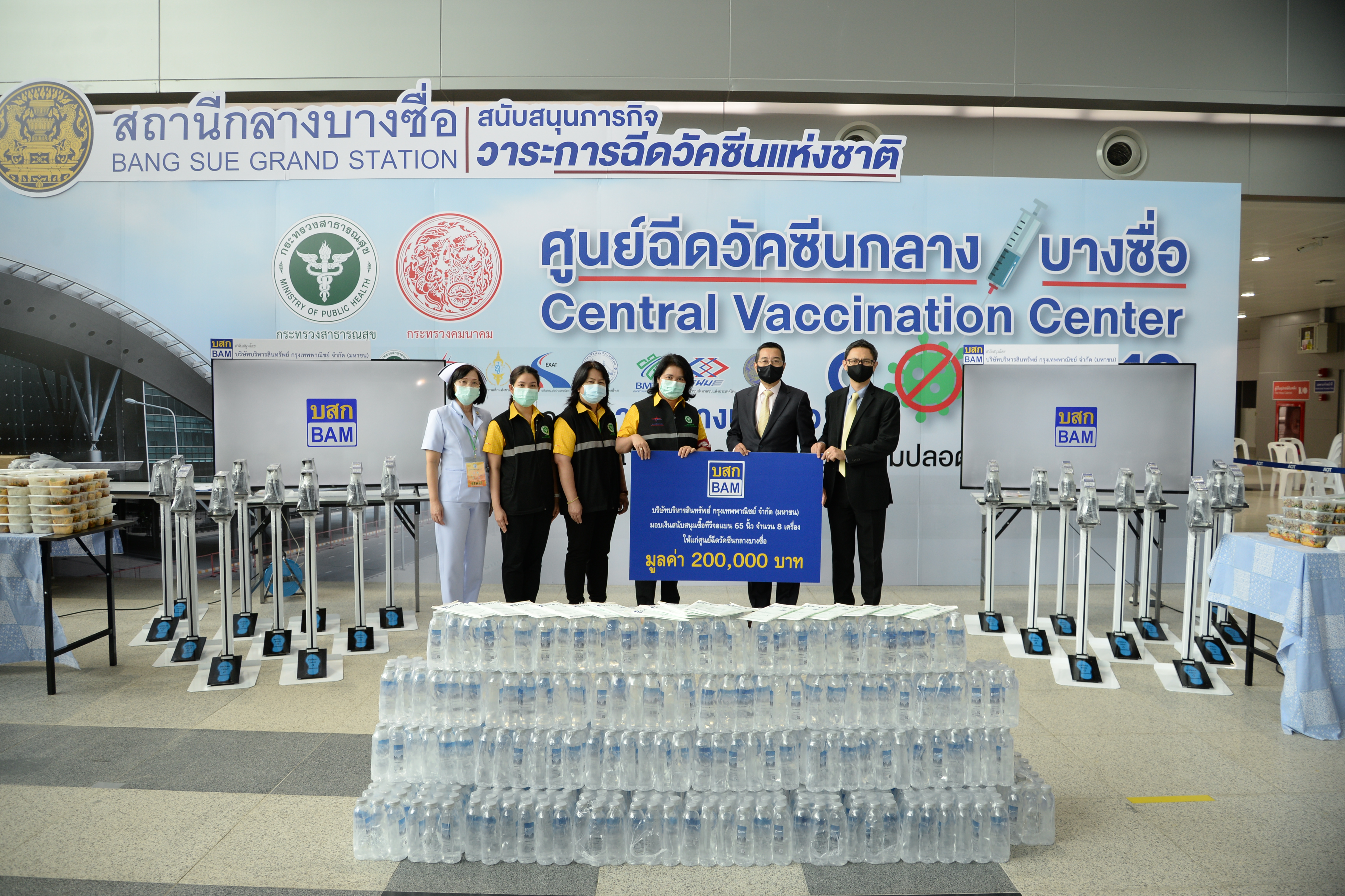 14 มิถุนายน 2564 : นายบัณฑิต อนันตมงคล ประธานเจ้าหน้าที่บริหาร และนายวีรเวช ศิริชาติไชย รองผู้จัดการใหญ่ บริษัทบริหารสินทรัพย์ กรุงเทพพาณิชย์ จำกัด (มหาชน) หรือ BAM มอบเงินสนับสนุนซื้อทีวีจอแบน 65” จำนวน 8 เครื่อง เพื่อแจ้งข้อมูลการให้บริการและให้ความรู้เกี่ยวกับวัคซีนโควิด -19 แก่ผู้รับบริการฉีดวัคซีน พร้อมมอบเครื่องกดเจลแอลกอฮอล์ฆ่าเชื้อ หน้ากากอนามัย อาหารกล่อง และน้ำดื่ม รวมเป็นจำนวนเงินทั้งสิ้น 270,000 บาท ให้แก่ศูนย์ฉีดวัคซีนกลางบางซื่อ โดยมีแพทย์หญิงมิ่งขวัญ วิชัยดิษฐ ผู้อำนวยการสถาบันโรคผิวหนัง เป็นผู้รับมอบ ซึ่งมีวัตถุประสงค์เพื่อสนับสนุนและสร้างขวัญกำลังใจให้แก่บุคลากรทางการแพทย์และเจ้าหน้าที่ โดยเป็นส่วนหนึ่งในโครงการ BAM ปันน้ำใจ สู้ภัยโควิด – 19 ณ ศูนย์ฉีดวัคซีนกลางบางซื่อ ![]()
