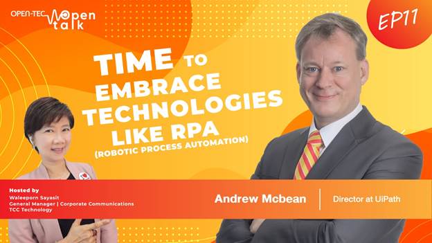 ตามกรณีศึกษาที่คุณ Andrew ได้กล่าวถึง ทั้งนี้ ทุกๆ เรื่องราว และทุกๆ ความคิดเห็นที่เกิดขึ้นในรายการ open talk |EP11| ตอน Time to embrace technologies like RPA จะเป็นมุมมองสำคัญให้แก่ผู้บริหารและผู้นำที่ต้องการปรับตัวเข้ากับการแข่งขันในโลกใบใหม่ รับชม EP11 ได้แล้ววันนี้ ผ่าน TCC Technology Official Channel