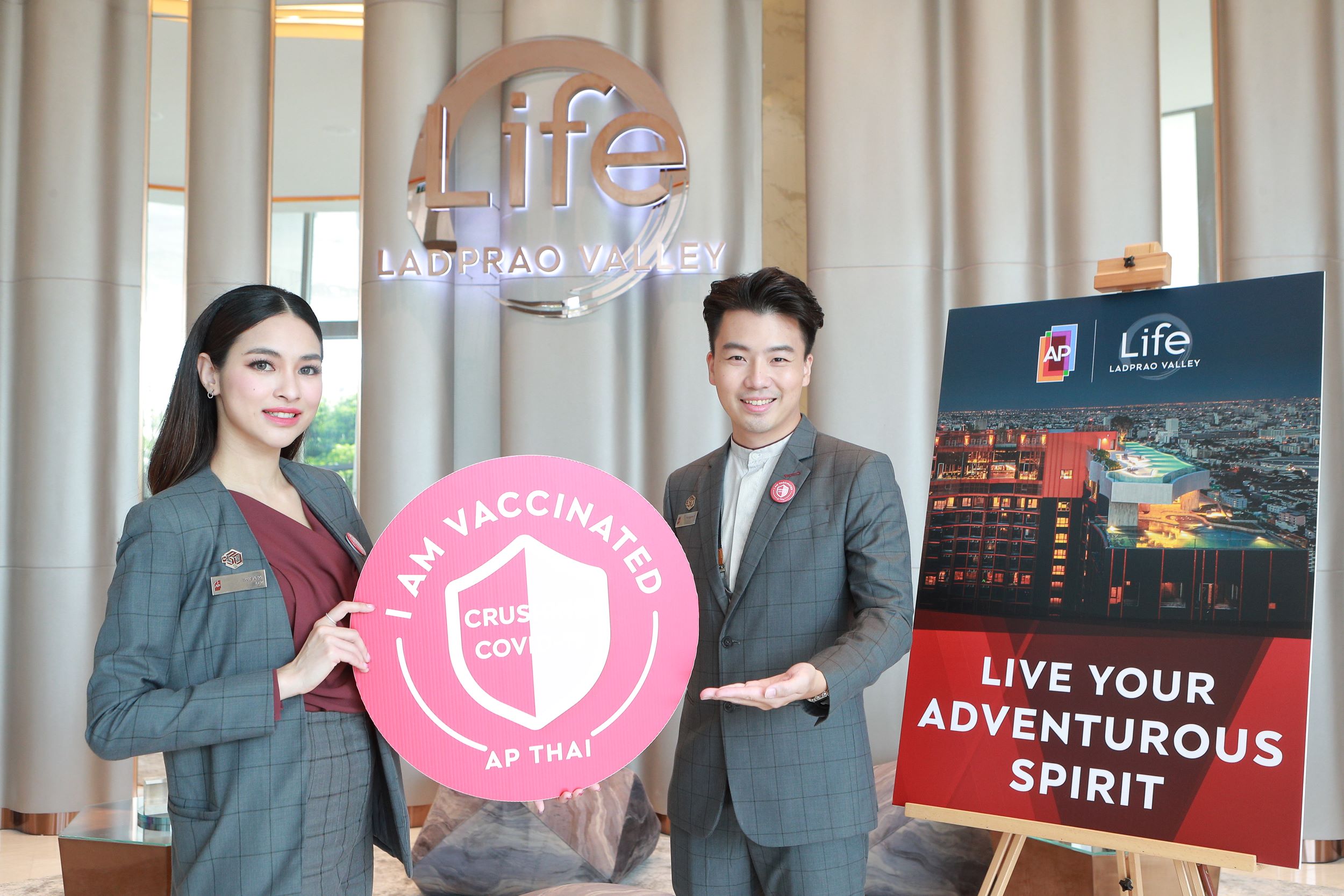 ด้วยมาตรฐานความปลอดภัยสร้างความอุ่นใจ ด้วยการฉีดวัคซีนเสริมภูมิคุ้มกันป้องกันโควิด-19 แก่พนักงานขายเครือเอพีทุกคน พร้อมติดเข็ม I AM VACCINATED, Crushing Covid-19 เพื่อเป็นสัญลักษณ์ความมั่นใจ อีกหนึ่งในมาตรการดูแลลูกค้าและพนักงานท่ามกลางสถานการณ์การแพร่ระบาด ที่เกิดขึ้น ล่าสุด พร้อมเตรียมรับรองลูกค้าเข้าตรวจรับห้องชุดในคอนโดมิเนียมพร้อมอยู่โครงการล่าสุดกับ LIFE ลาดพร้าว แวลลีย์ ลักชัวรี่คอนโดมิเนียม ที่สุดในทุกมิติ ตรงข้ามเซ็นทรัล ลาดพร้าว เชื่อมต่อได้ทั้ง BTS ห้าแยกลาดพร้าว และ MRT พหลโยธิน ![]()
