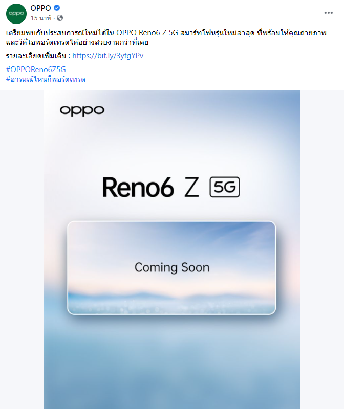 5 กรกฎาคม 2564 : หลังจากสร้างความสำเร็จมาอย่างต่อเนื่องกับซีรีส์สมาร์ทโฟนกล้องสุดเทพ ดีไซน์สวยโดดเด่นอย่าง OPPO Reno5 Series 5G ในช่วงไตรมาสแรกที่ผ่านมา โดยได้รับกระแสตอบรับจากผู้ใช้งานจริงและฮอตสุดๆ ทั้งยอดขายและการพูดถึงบนโลกออนไลน์ ออปโป้เตรียมปล่อย “OPPO Reno6 Z 5G” เอาใจแฟนๆ ออปโป้สายถ่ายภาพ ล่าสุดได้รับการยืนยันแล้ววันนี้ว่ารุ่นใหม่ล่าสุดที่จะเข้ามาจำหน่ายในไทย พร้อมที่จะมาสานต่อด้านความเป็นผู้นำด้านพอร์ตเทรต ด้วยสโลแกน “อารมณ์ไหน ก็พอร์ตเทรต” ที่พร้อมให้คุณถ่ายภาพและวิดีโอพอร์ตเทรตได้อย่างสวยงามกว่าที่เคย