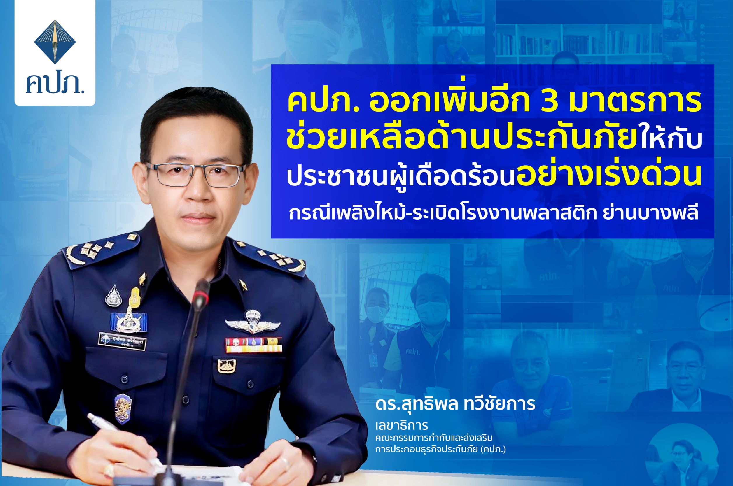 7 กรกฎาคม 2564 : ดร. สุทธิพล ทวีชัยการ เลขาธิการคณะกรรมการกำกับและส่งเสริมการประกอบธุรกิจประกันภัย (เลขาธิการ คปภ.) เปิดเผยว่า จากกรณีถังเก็บสารเคมีระเบิดภายใน บริษัท หมิงตี้ เคมิคอล จำกัด ตั้งอยู่เลขที่ 87 หมู่ 15 ซอยกิ่งแก้ว 21 ถนนกิ่งแก้ว ตำบลบางพลีใหญ่ อำเภอบางพลี จังหวัดสมุทรปราการ ซึ่งเป็นโรงงานผลิตเม็ดโฟมและพลาสติก