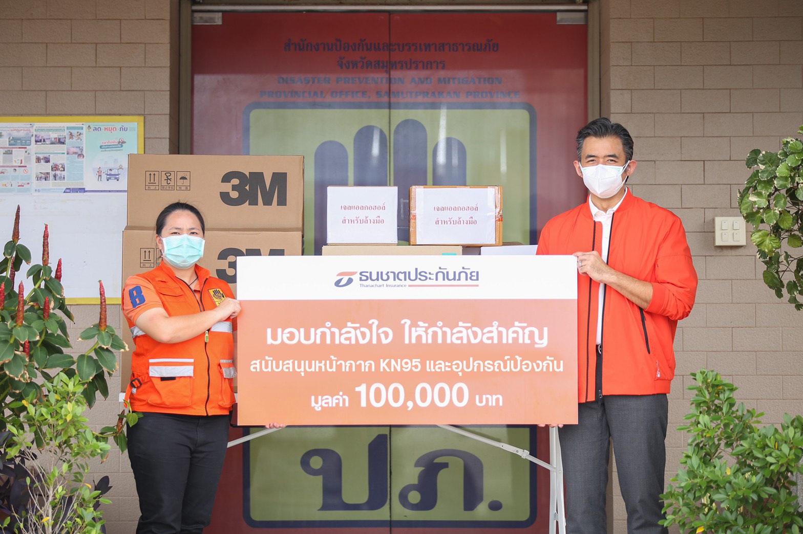 7 กรกฎาคม 2564 : นายมหพล จินดาขันธ์ Head of Customer management บริษัท ธนชาตประกันภัย จำกัด (มหาชน) สนับสนุนหน้ากาก KN95 และอุปกรณ์ป้องกันให้เจ้าหน้าที่ มูลค่า 100,000 บาท เพื่อสนับสนุนการปฏิบัติงานของเจ้าหน้าที่ ที่เข้าไปช่วยเหลือดูแลผู้ประสบภัยจากเหตุเพลิงไหม้โรงงานย่านกิ่งแก้ว อำเภอบางพลี จังหวัดสมุทรปราการ โดยมี นางขวัญดาว สายวาณิชย์ นักวิเคราะห์นโยบายและแผนชำนาญการ สำนักงานป้องกันและบรรเทาสาธารณภัย จังหวัดสมุทรปราการ เป็นตัวแทนรับมอบ