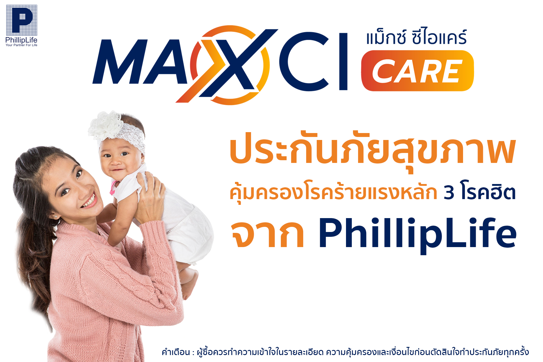 นางชีวินา เพ็ชรถนอม ผู้ช่วยกรรมการผู้จัดการอาวุโสฝ่ายการตลาดองค์กรและดิจิทัล บริษัท ฟิลลิปประกันชีวิต จำกัด (มหาชน) กล่าวว่าประกันออนไลน์ "แมกซ์ ซีไอ แคร์" (Max CI Care) คุ้มครองการเสียชีวิตตลอดสัญญา 5 ปี 50,000 บาท และหากได้รับวินิจฉัยและได้รับคำยืนยันจากแพทย์ว่าเป็นโรคร้ายแรงโรคใดโรคหนึ่ง หรือทั้ง 3 โรคจะได้รับเงินชดเชย ตั้งแต่ 100,000 จนถึง 300,000 บาทตามแผนความคุ้มครอง โดยผลิตภัณฑ์นี้รับประกันตั้งแต่อายุ 16-60 ปี ที่สำคัญอัตราเบี้ยประกันไม่สูงเริ่มต้นประมาณ 200 กว่าบาทต่อปี จ่ายเบี้ยประกันคงที่