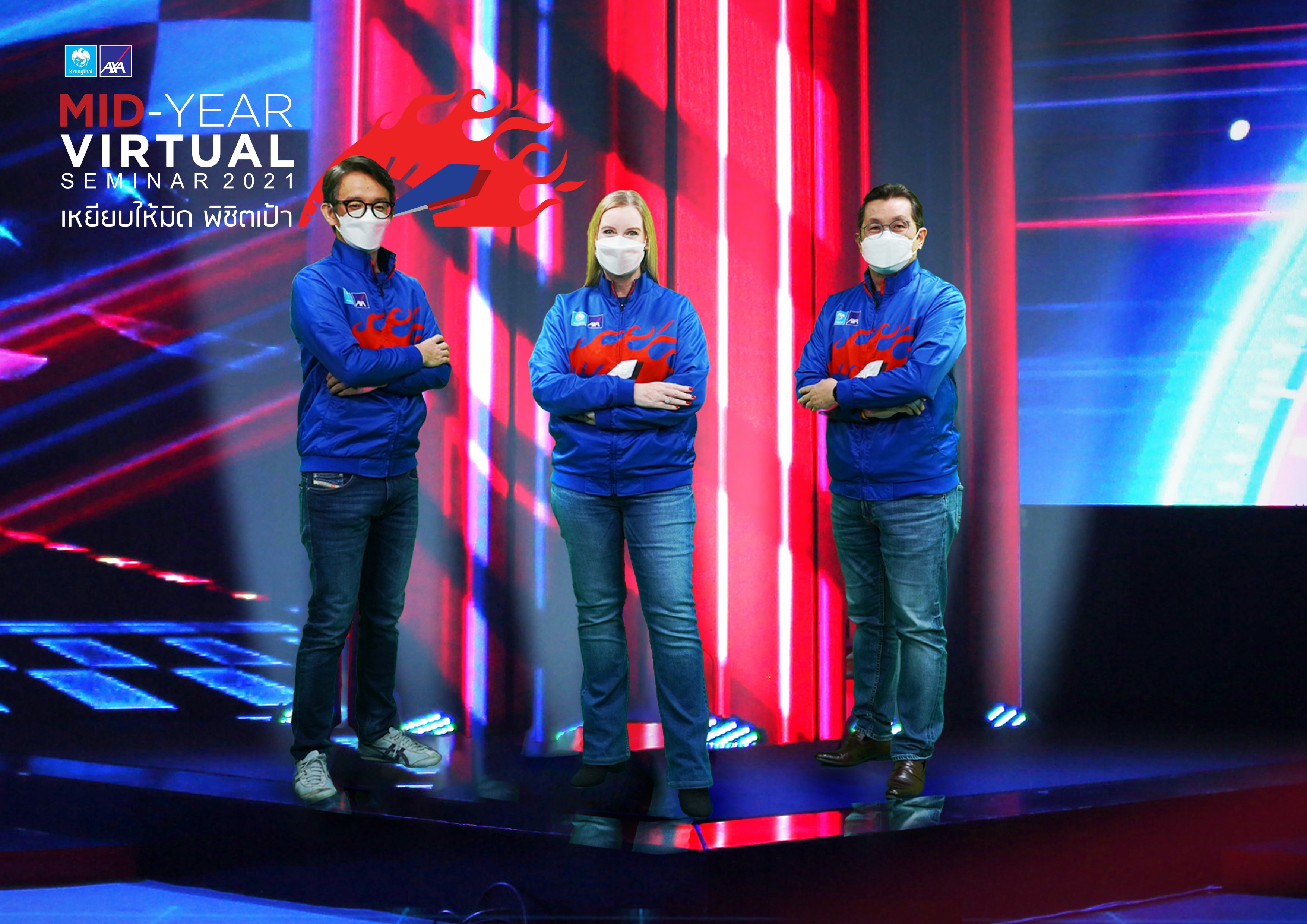 13 กรกฎาคม 2564 : บมจ.กรุงไทย-แอกซ่า ประกันชีวิต จัดงาน Agency Mid-Year Virtual Seminar 2021 – เหยียบให้มิด พิชิตเป้า แบบนิวนอลมอลผ่านช่องทางออนไลน์ นำโดย คุณแซลลี่ โอฮาร่า ประธานเจ้าหน้าที่บริหาร (คนกลาง) คุณชัยณรงค์ เอื้อสิทธิชัย ประธานเจ้าหน้าที่บริหาร ฝ่ายจัดจำหน่าย (คนซ้าย) ดร.อุกฤษฎ์ ศรีดโรมนต์ ประธานเจ้าหน้าที่บริหาร ฝ่ายตัวแทน (คนขวา) และผู้บริหาร ร่วมนำทัพนักขาย ออกตัว เหยียบคันเร่งในช่วงครึ่งปีหลังด้วยความมุ่งมั่น และมั่นใจ เพื่อพิชิตเป้าหมาย ปี 2021 พร้อมตอกย้ำจุดยืน “2021 Year of Confidence ปีแห่งความเชื่อมั่น” และมุ่งมั่นที่จะอยู่เคียงข้างทุกความเชื่อมั่น ดูแลลูกค้า รวมถึงฝ่ายขายทุกท่าน พร้อมทั้งให้การสนับสนุน และยกระดับให้ฝ่ายขาย ประสบความสำเร็จในอาชีพตั้งแต่เริ่มต้น จนก้าวสู่การเป็นนักขายมืออาชีพระดับ AXA Prime