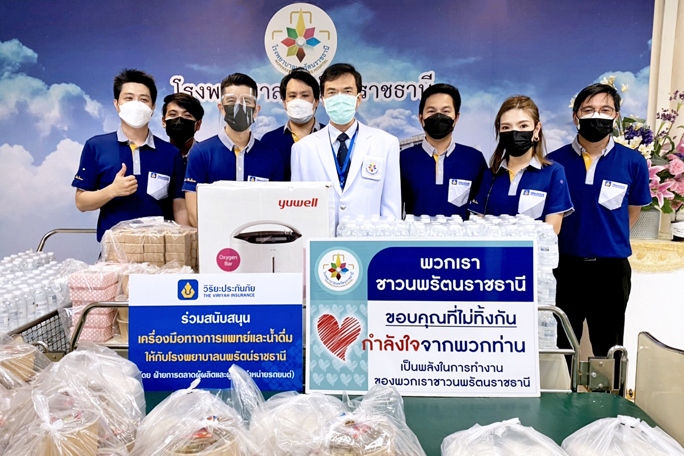 14 กรกฎาคม 2564 : นายแพทย์ปิยชาติ สุทธินาค ผู้ช่วยผู้อำนวยการด้านพัฒนาระบบบริการ โรงพยาบาลนพรัตนราชธานี รับมอบอุปกรณ์ทางการแพทย์ อาทิ เตียงผู้ป่วย เครื่องช่วยหายใจ รวมถึงอาหารพร้อมทานและน้ำดื่ม จาก บริษัท วิริยะประกันภัย จำกัด (มหาชน) โดยมี นายไผท ทองธิว ผู้ช่วยผู้จัดการฝ่ายการตลาดผู้ผลิตและผู้แทนจำหน่ายรถยนต์ เป็นผู้แทนบริษัทฯ มอบ เพื่อสนับสนุนการปฏิบัติงาน ตลอดจนเพื่อเป็นขวัญและกำลังใจให้แก่บุคลากรทางการแพทย์ที่ต้องปฏิบัติหน้าที่ช่วยเหลือผู้ป่วยอย่างใกล้ชิด ท่ามกลางสถานการณ์การแพร่ระบาดเชื้อไวรัสโควิด-19 ณ โรงพยาบาลนพรัตนราชธานี ถนนรามอินทรา แขวงคันนายาว เขตคันนายาว กรุงเทพฯ
