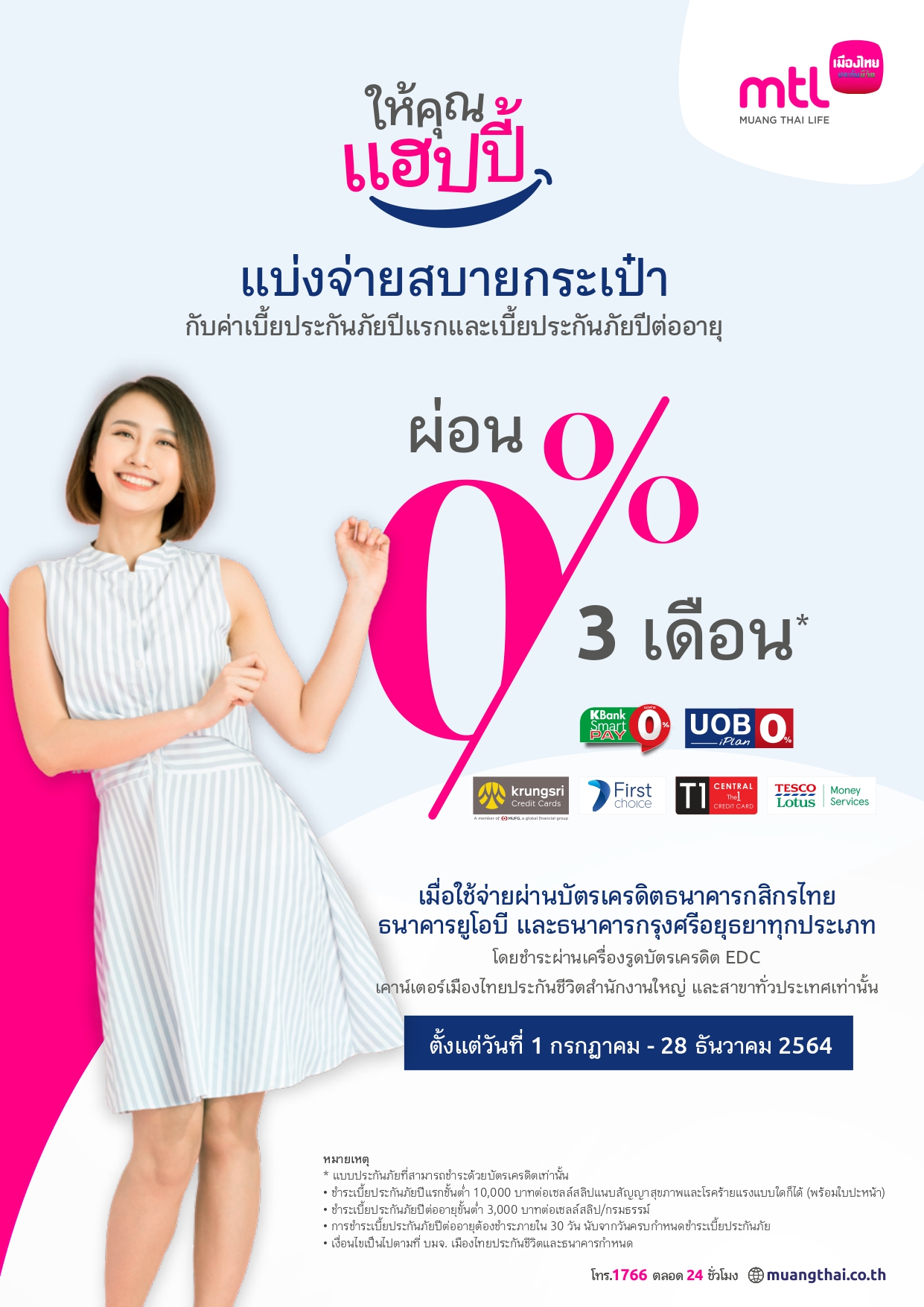หมายเหตุ: เงื่อนไขเป็นไปตามที่ บมจ. เมืองไทยประกันชีวิต และธนาคาร กำหนด