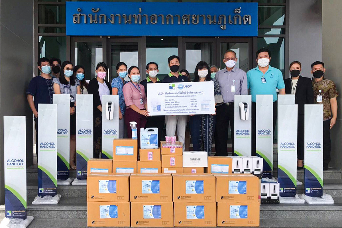 ส่วนในภาคสังคมนั้น ได้มีการส่งมอบผลิตภัณฑ์ฆ่าเชื้อและเจลแอลกอฮอล์ให้แก่หน่วยงานต่างๆ ผ่านผู้ว่าราชการกรุงเทพมหานคร นำไปกระจายสู่พื้นที่ที่มีความจำเป็นต้องใช้งาน รวมถึงมอบผลิตภัณฑ์ให้หน่วยงานอื่น อาทิ ท่าอากาศยานหาดใหญ่ ท่าอากาศยานแห่งชาติภูเก็ต โรงเรียนสตรีนนทบุรี ฯลฯ ช่วยเหลือฉีดพ่นฆ่าเชื้อบริเวณสถานีขนส่งสาธารณะของภาครัฐ เช่น สถานีขนส่งหมอชิต และส่งมอบอาหารกล่องเพื่อเป็นกำลังใจให้กับบุคลากรทางการแพทย์ โรงพยาบาลพระมงกุฎเกล้า อีกด้วย ![]()