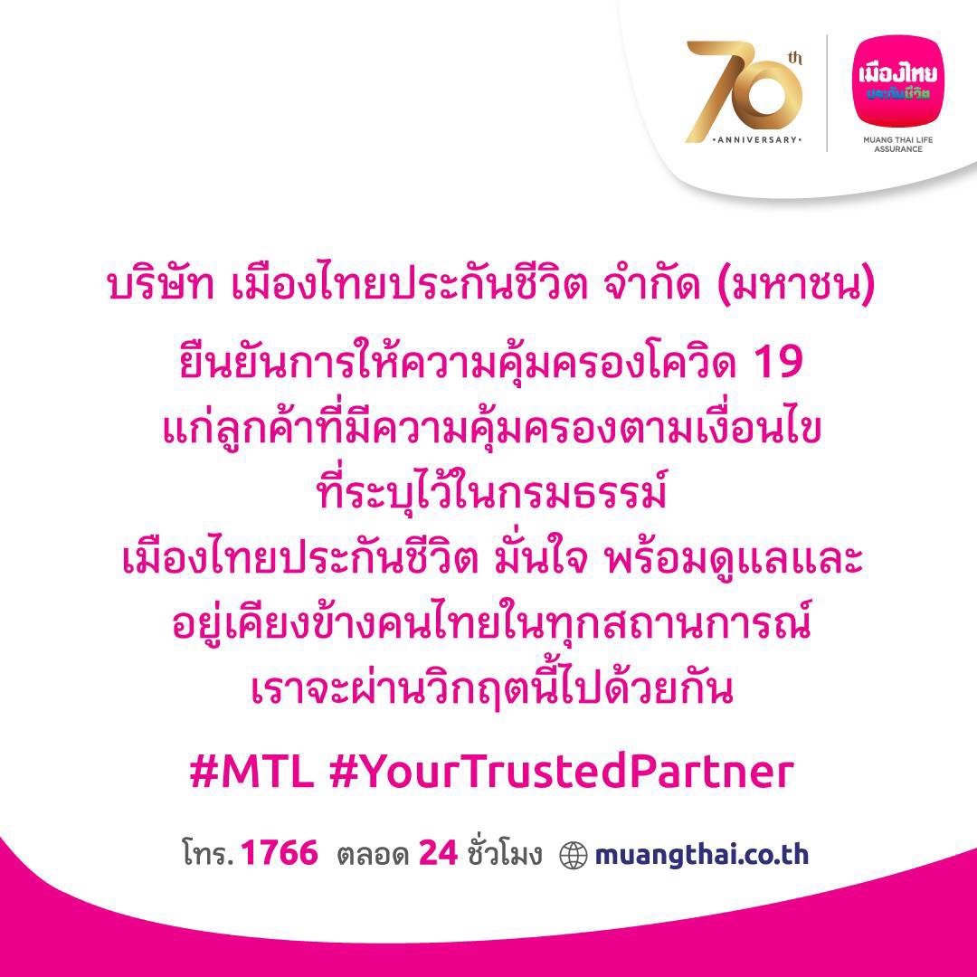 บริษัท เมืองไทยประกันชีวิต จำกัด (มหาชน) ยืนยันการให้ความคุ้มครองโควิด 19 แก่ลูกค้าที่มีความคุ้มครองโควิด 19 ตามเงื่อนไขที่ระบุไว้ในกรมธรรม์